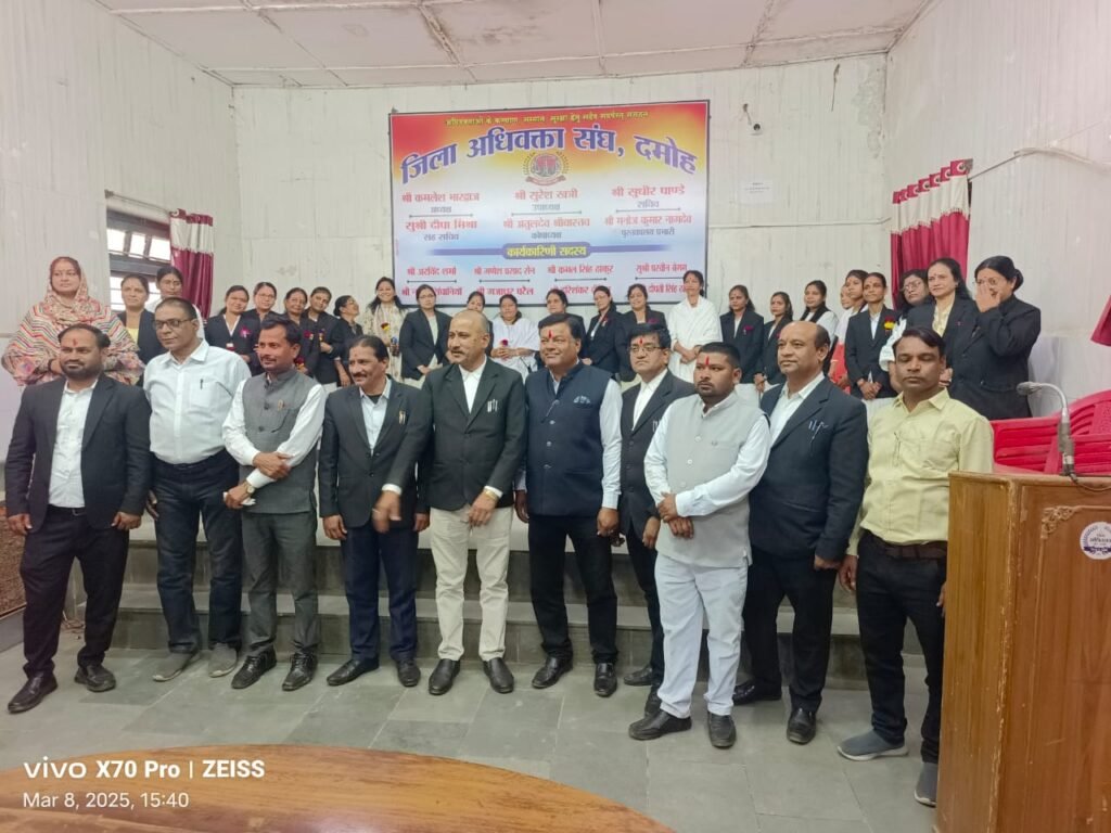 दमोह। 8 मार्च 2025 को जिला अधिवक्ता संघ दमोह के पदाधिकारियो के द्वारा अंर्तराष्ट्रीय राष्ट्रीय महिला दिवस के अवसर पर महिला अधिवक्ताओ का सम्मान समारोह आयोजित किया गया। उक्त संबंध में संघ के अध्यक्ष कमलेष भारद्धांज उपाध्यक्ष सुरेष कुमार खत्री, सचिव सुधीर पाण्डे ने जानकारी देते हुये बताया कि 8 मार्च को अंर्तराष्ट्रीय राष्ट्रीय महिला दिवस के अवसर पर जिला अधिवक्ता संघ दमोह के समस्त पदाधिकारियो के द्वारा महिला अधिवक्ताओ का पुष्पगुच्छ एवं कलम देकर सम्मानित किया गया इस अवसर संघ के सचिव सुधीन पांडे ने बताया कि प्रतिवर्ष 8 मार्च को अंर्तराष्ट्रीय राष्ट्रीय महिला दिवस का आयोजन भारत वर्ष में किया गया ,भारत की प्रत्येक महिला हर क्षेत्र आज कदम से कदम मिलाकर चल रही है एवं पुरूषो से किसी भी क्षेत्र में पीछे नही है। आज भारत के सर्वोच्य पद पर विराजमान राष्ट्रपति माननीय द्रोपती मुर्मू पदस्थ है जो इस बात की पुष्टि करती है कि भारत की नारी किसी भी क्षेत्र में पीछे नही रह सकती है। जिला अधिवक्ता संघ दमोह के द्वारा 8 मार्च 2025 को केन्द्रीय कक्ष में एक समारोह आयोजित कर नारी सम्मान के रूप मे महिला अधिवक्ताओ का सम्मान एवं स्वागत किया गया। सम्मान समारोह के दौरान संघ के समस्त अधिवक्तागण उपस्थिति रही।