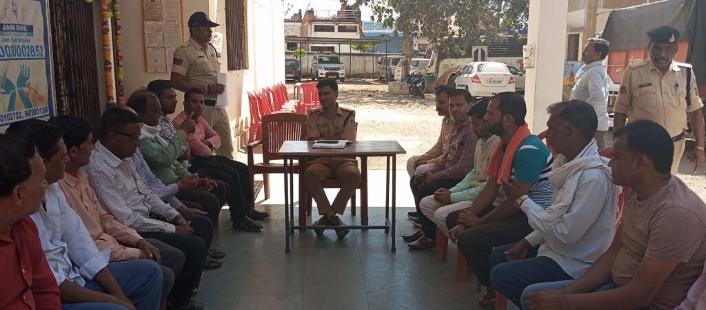 बैठक में उपस्थित सभी गणमान्यजनों एवं सामाजिक जनप्रतिनिधियों ने अपने-अपने पर्व परंपरानुसार आपसी सद्भाव पूर्ण माहौल में बनाने का निर्णय लिया। बैठक मे श्री गुर्जर ने कहा कि कोई भी किसी को जबरन रंग ना लगायें, शराब खोरी ना करें, कोई शराब का सेवन एवं क्रय-बिक्रय ना करे। उपद्रवी तत्वों के खिलाफ सख्त कार्यवाही की जायेगी। सभी अपने पर्व अमन, शांति एवं आपसी भाईचारा के साथ मनाये। बैठक में लक्ष्मण पटेल, देवेंद्र ठाकुर, तैय्यूब अली , हबीब राजा चौहान , अन्नु राजपूत, गणेश सिंह, मुन्ना चौरसिया, शानू खान ,पटवारी संदीप यादव, धर्मेंद्र चमन, कालूराम अहिरवार, नरेश साहू ,राकेश वर्मा, वीरेंद्र दुबे , मनजीत राज, अल्ताफ बाबू, सुजात खान सहित बड़ी संख्या में गणमान्य नागरिक मौजूद रहे।