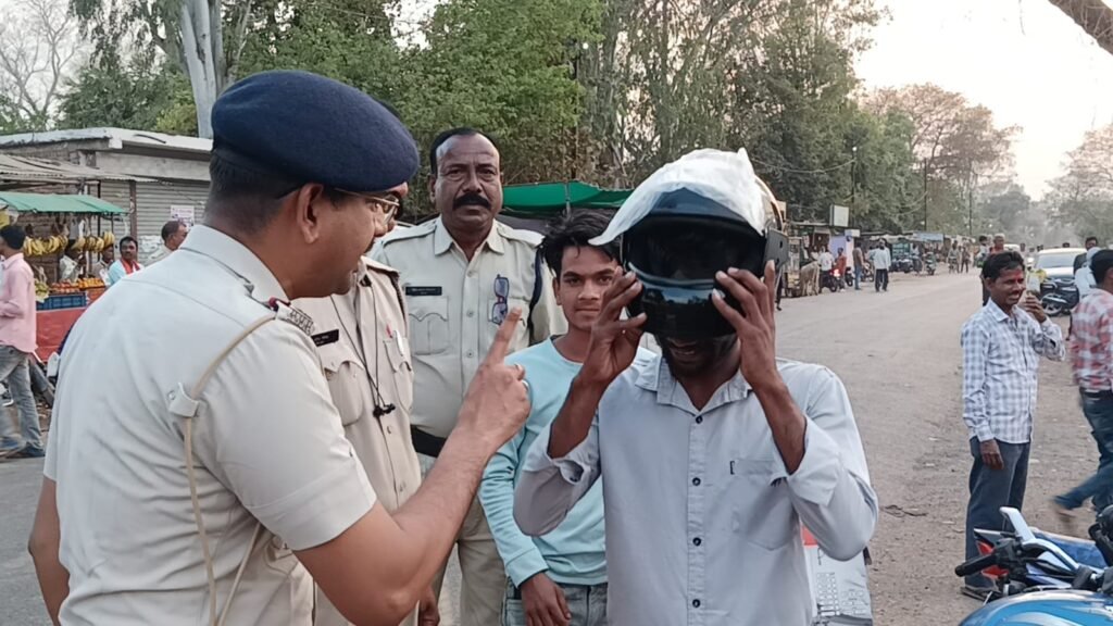 सिंग्रामपुर/ सिंग्रामपुर पुलिस ने एक अनोखी पहल की जिसमें उन्होंने सघन वाहन चेकिंग अभियान के दौरान चालानी कार्रवाई नहीं की, बल्कि वाहन चालकों को हेलमेट पहनने के महत्व के बारे में समझाया। इस अभियान के दौरान, पुलिस ने लगभग 30 वाहन चालकों को हेलमेट पहनाया और उन्हें सड़क सुरक्षा के बारे में जागरूक किया।