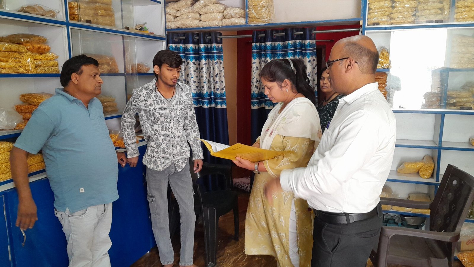 बिना बैच नंबर, पैकिंग डेट एवं एक्सपायरी डेट के विक्रय हो रहे 53.5 किलो नमकीन बाजार मूल्य 4280 रुपए को किया गया नियमानुसार जप्त