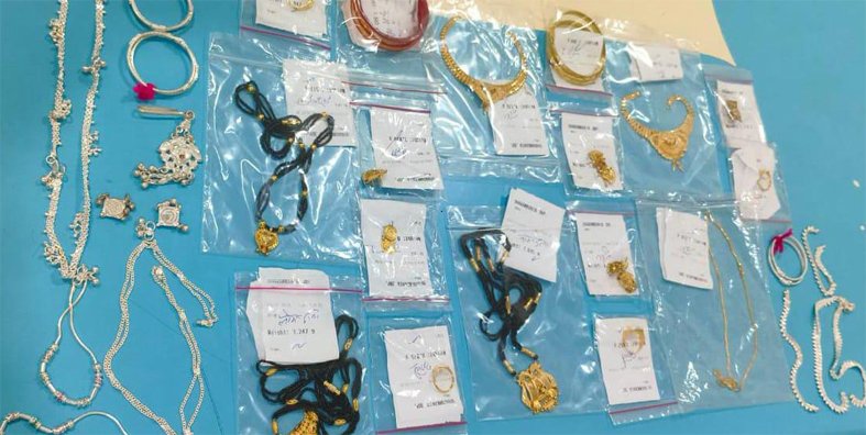 जबलपुर। क्राइम ब्रांच व संजीवनी नगर पुलिस ने तीन शातिर नकबजनों को अभिरक्षा में लिया है। पूछताछ के दौरान आरोपियों ने संजीवनी नगर थाना क्षेत्र में हुई दो नकबजनी की घटनाओं का खुलासा किया है। आरोपियों की निशानदेही पर दो घरों से चुराये गये 8 लाख के जेवर व घटना में प्रयुक्त मोटरसाइकिल जब्त की गई। संजीवनी नगर थाना प्रभारी अंजलि उदेनिया ने बताया कि लालबाबा मंदिर संजीवनी नगर निवासी भरत कुमारी तिवारी जेसीबी मेशनी का काम करते हैं। गत 28 अगस्त को भरत तिवारी सपरिवार ग्वालियर जब वे 6 सितंबर को वापस घर आये तो देखा कि घर का ताला खुला था। अंदर रखी अलमारी का ताला भी टूटा मिला। चोरी की शंका पर जब उन्होंने आलमारी के लॉकर को चेक किया तो बैग में रखी सोने की एक चेन, अंगूठी गणेश जी का एक लॉकेट, ओम बना बच्चों का छोटा लॉकेट, चांदी की पायल, संतान सातें की चूड़ी गायब थी। इसी तरह की वारदात को अज्ञात चोरों ने नब्बे क्वार्टर संजीवनी नगर में काम करने वाली बाई श्रीमती मनीषा शुक्ल के घर में अंजाम दिया। दिनदहाड़े हुई वारदात में अज्ञात चोरों ने अलमारी में रखे सोने की चेन, मंगलसूत्र, कान के बाले, कंगन, गले का हार पार दिया। जांच के दौरान पुलिस ने घटना स्थल के आसपास लगे सीसी टीवी कैमरों की फुटेज चेक कर आरोपियों गोटेगांव निवासी सुमंत महाराज, गोटेगांव निवासी स्वतंत्र चौधरी व मांडवा बस्ती गोरखपुर निवासी कमलेश ठाकुर को अभिरक्षा में लेकर पूछताछ की तो आरोपियों ने दोनो चोरियों को अंजाम देना स्वीकार कर लिया