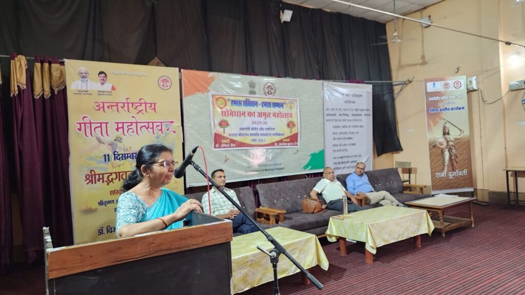 कार्यक्रम की प्रमुख वक्ता और संयोजक डॉ इन्दिरा जैन ने संविधान की मूल आत्मा उसकी भावना, उद्देश्य, उसके लक्ष्य, और उसमें किए गए नागरिक और व्यक्तियों के लिए प्रावधान पर विस्तृत चर्चा की उन्होंने कहा कि भारतीय संविधान की प्रस्तावना की सबसे बड़ी खूबसूरती यह है कि उसमें हर नागरिक और व्यक्ति को प्रतिष्ठा और गरिमा के साथ जीने का अधिकार दिया है। उन्होंने कहा कि संविधान की प्रस्तावना की अंतिम पंक्ति में उल्लेखित तीन शब्द अंगीकृत अधिनियमित और आत्मअर्पित में से अंतिम शब्द आत्माअर्पित होना अभी बाकी है। डॉ एन आर सुमन ने कहा कि संविधान अपरिपक्व नहीं परिपक्व सर्वोच्च विधान है। इसकी सफलता इसी बात में है कि आज तक हमारे देश में संविधान, विधि, विधान, शासन प्रशासन के खिलाफ कोई क्रांति नहीं हुई। संविधान के लचीलेपन ने सामाजिक परिवर्तन के अनुकूल हर चीज को समाहित किया है। शासकीय आदर्श महाविद्यालय के प्रभारी प्राचार्य डां कीर्ति काम दुबे ने कहा कि संविधान हमें अधिकार और कर्तव्य दोनों देता है पर हम जितने लालायित अधिकारों के लिए दिखाई देते हैं उतना ही कर्तव्यों के प्रति होना अनिवार्य है। संस्कृत के सहायक प्राध्यापक जितेन्द्र धाकड़ ने अपने उद्बोधन में कहा कि धर्मशास्त्र पहले आये संविधान बाद में पर संविधान में सभी धर्म ग्रन्थों, हमारी संस्कृति और सभ्यता को समाहित किया गया है। धीरज जांनसन ने चार आश्रमों की बात कही उन्होंने कहा कि मैं तो वानप्रस्थ की ओर हूं पर आप विद्यार्थी ब्रह्मचर्य में है क्या आप अपने दायित्वों का निर्वाहन कर रहे हैं, यह चिंतन का विषय है। डॉ सिकंदर डुलगज ने कहा कि संविधान सिर्फ लोकतंत्र की ही नहीं हम सभी की आत्मा है। हमारी रक्त वाहिनी है संजीवनी है। संविधान सभा में अतिशय मंथन के बाद यह अमृत देश को प्राप्त हुआ है। इस दौरान राजनीति विज्ञान विभाग के स्नातकोत्तर कक्षाओं के विद्यार्थी निधि मिश्रा,सारिका पाठक, मोहिनी पटेल,अनुप्रिया सिंह राजपूत,हीरा अहिरवाल,प्रशांत पटेल, श्रेया सोनी,अनुराग पटेरिया,श्री राम अहीरवाल,दीपक चौधरी, निशांत मेहरा,अनमोल जैन, और शिवा पाठक ने भी भारतीय संविधान पर अपने विचार रखे। कार्यक्रम का संचालन डॉ अनिल जैन ने किया।