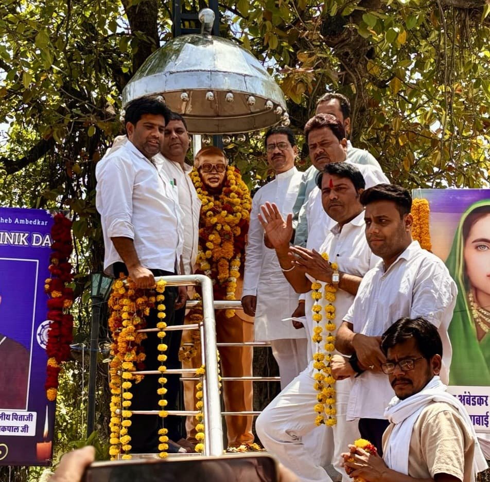 सागर ! संविधान निर्माता बाबा साहेब डॉ.भीमराव अम्बेडकर की जयंती को ब्लॉक कांग्रेस कमेटी मकरोनिया के तत्वाधान में पूरी श्रद्धा और गरिमा के साथ मनाया गया।जहां कांग्रेसजनों ने मध्य प्रदेश शासन के पूर्व मंत्री सुरेन्द्र चौधरी की मुख्य उपस्थिति में मकरोनिया स्थित बाबा साहब डॉ.भीमराव अंबेडकर की प्रतिमा पर माल्यार्पण कर उनका पुण्य स्मरण करते हुये भारतीय संविधान की रक्षा करने की शपथ ली तथा देश के प्रति डॉ.अम्बेडकर साहब के योगदान और संविधान पर संक्षिप्त वृतांत रेखांकित कर उनके द्वारा बनाये संविधान और उनके सिद्वांतों का अनुसरण करने का संकल्प लिया। इस अवसर पर मुख्य रूप से ब्लॉक कांग्रेस अध्यक्ष देवेन्द्र कुर्मी,आर आर पाराशर,अशरफ खान,हेमंत लारिया, मुल्ले चौधरी,अमित नायक,पार्षद सीमा कमल चौधरी,अजय अहिरवार पार्षद प्रतिनिधि,एड कमलेश नायक,मनोज राय, रोहित वर्मा,राजा बुंदेला,कमल चौधरी, महेंद्र यादव,कमल जैन, वीरेंद्र जैन,प्रेम अहिरवार,रोशन अनुरागी,हर्ष वर्धन कुर्मी, कमलेश कुमार,भूपेंद्र अहिरवार, संजय अहिरवार,अजय चौधरी,मोहन अहिरवार,सत्यम चौधरी, विनोद अहिरवार, विजय पाराशर,कल्याण अहिरवार, गुड्डू रैकवार,कपूर अहिरवार, राजेन्द्र अहिरवार आदि कांग्रेसजन मौजूद थे।