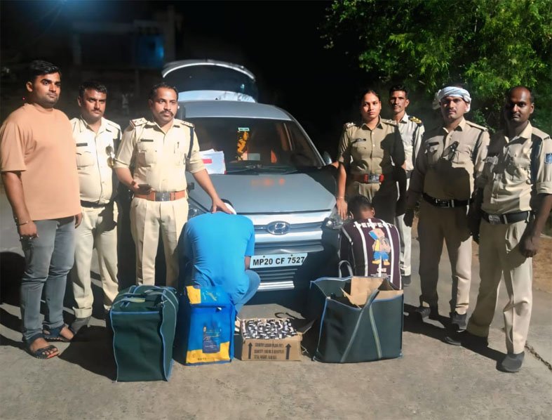 गोहलपुर थाना प्रभारी श्रीमति प्रतीक्षा मार्को ने बताया कि कल देर रात नाकाबंदी कर खजरी खिरिया बाईपास में सफेद रंग की आई टेन कार क्रमांक एमपी 20 सीएफ 7527 में दो लडके दीपक रजक और आदित्य साहू अवैध शराब की तस्करी करते हुए पकड़े गए| कार की तलाशी लेने पर कार के पीछे व डिक्की में थैले में 5 कार्टूनो के अंदर 36 बॉटल बैगपाईपर अंग्रेजी शराब, 47 बॉटल बैगपाईपर व्हिस्की, 35 बॉटल मैगडावल रम, 35 बॉटल 8 पीएम व्हिस्की, 50 पाव देशी शराब रखी मिली। आरोपियो के कब्जे से 153 बॉटल अंग्रेजी एवं 50 पाव देशी शराब एवं 2 मोबाईल तथा आई टेन कार जप्त की गई है| आरोपियों के विरुद्ध धारा 34(2) आबकारी एक्ट के तहत कार्यवाही की गई।