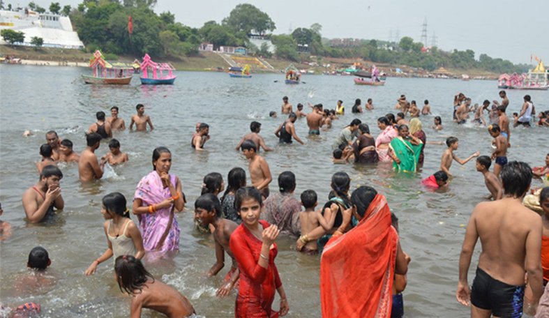 वैशाख पूर्णिमा पर नर्मदा में लगाई डुबकी