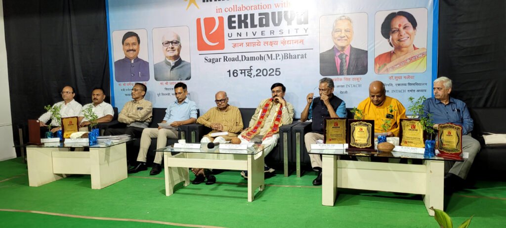 एकलव्य विश्वविद्यालय की कुलाधिपति एवं इंटेक दमोह की संयोजक डॉ.सुधा मलैया ने संबोधित करते हुए कहा हमारे वीर जवानों के अद्भुत शौर्य व साहस की सराहना सब कर रहे हैं, किंतु इसलिए कि भारतीय संस्कृति का प्रवाह समूचे विश्व पर है और उसकी छाप हम सब पर है। भारतीय संस्कृति जिसकी क्षितिज के मुख्य चार स्तंभ हैं, क्षितिज हर राष्ट्र की एक पहचान होती है, जो उसके विचारों की सामूहिक चेतना होती हैं, जो वर्षों के बाद पैदा होती है, जिससे उसकी पहचान की जाती है, यह उस राष्ट्र की सामूहिक क्षितिज है, इनसे पहचान की जा सकती है, तो हमारी राष्ट्र की क्षितिज चार स्तंभों पर है, प्रथम सत्य है उसे किसी भी रास्ते से पाया जा सकता है। अंत में इंटेक अध्यक्ष देहली श्री ठाकुर ने एकलव्य विश्ववविद्यालय की कुलाधिपति, कुलगुरू एवं कुलसचिव के साथ ही इंटेक दमोह चैप्टर के सभी सदस्यों को नियुक्ति पत्र प्रदान किया गया। कुलगुरू डॉ. पवन कुमार जैन द्वारा सभी अतिथियों का आभार व्यक्त किया गया। कार्यक्रम का मंच संचालन डॉ. हृदय नारायण तिवारी द्वारा किया गया। कार्यक्रम का समापन डॉ. स्वाति गौर के स्वर में स्वर मिलाकर सामूहिक राष्ट्रगीत से किया गया।