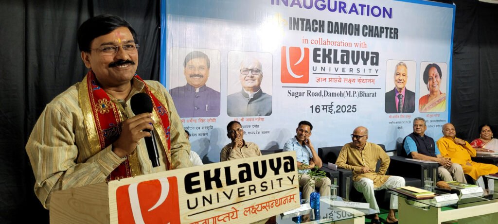 दमोह: विरासत जागरूकता और संरक्षण को बढ़ावा देने के उद्देश्य से प्रदेश के संस्कृति, पर्यटन, धार्मिक न्यास एवं धर्मस्व राज्यमंत्री (स्वतंत्र प्रभार) धर्मेन्द्र सिंह लोधी, पूर्व वित्तमंत्री एवं दमोह विधायक जयंत मलैया की उपस्थिति में इंटेक दमोह चेप्टर का शुभारंभ एकलव्य विश्वविद्यालय में संपन्न हुआ। इस अवसर पर इंटेक के राष्ट्रीय अध्यक्ष अशोक सिंह ठाकुर, इंटेक मध्यप्रदेश के प्रदेश संयोजक दीपक खांडेकर (सेवानिवृत्त आईएएस), विशेष सचिव रेरा भोपाल तथा प्रदेश सहसंयोजक इंटेक राजेश बहुगुणा (सेवानिवृत्त आईएएस), इंटेक जबलपुर के संयोजक डॉ.संजय मल्होत्रा, कलेक्टर एवं इंटेक अध्यक्ष सुधीर कुमार कोचर एकलव्य विश्वविद्यालय की कुलाधिपति एवं इंटेक दमोह की संयोजक डॉ.सुधा मलैया खासतौर पर मौजूद थीं। कार्यक्रम का शुभारंभ माँ सरस्वती की प्रतिमा के समक्ष दीप प्रज्जवलन कर किया गया। इस अवसर पर अतिथियों को शाल श्रीफल एवं स्मृति चिन्ह भेंट कर सम्मानित किया गया।