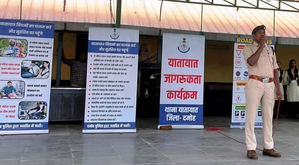 दमोह: जिला कलेक्टर एवं पुलिस अधीक्षक द्वारा दिए गए निर्देशों के तहत जिले में परिवहन विभाग एवं यातायात पुलिस लगातार कार्यवाही कर रहा हैं। इसी क्रम में यातायात टीआई दलबीर सिंह मार्को ने बताया उत्कृष्ट विद्यालय दमोह में लगभग 800 छात्र-छात्राओं को यातायात नियमों की जानकारी दी गई। साथ ही यातायात जागरूकता संबंधी पंपलेट का वितरण कर जागरूक किया गया। परिवहन अधिकारी क्षितिज सोनी ने बताया जिला अस्पताल के समीप एम्बुलेंस चैंकिग की गई।