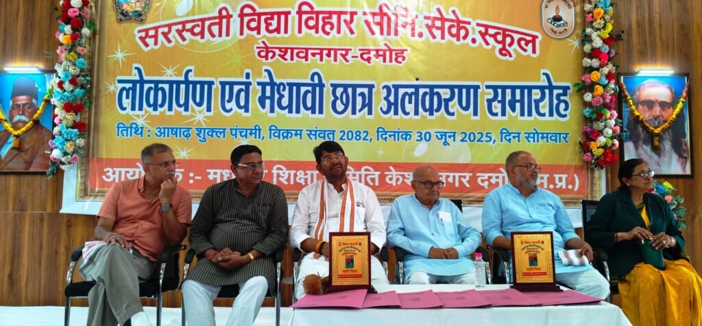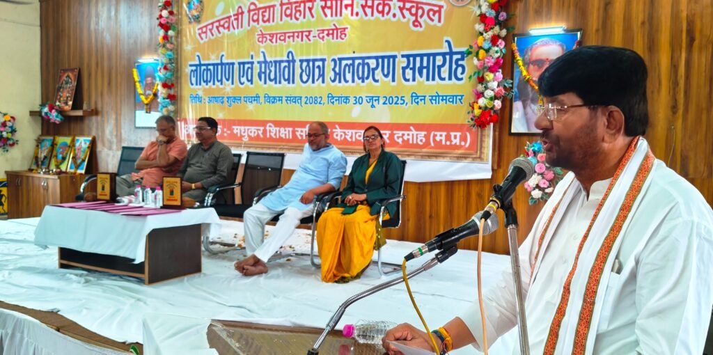 दमोह: जिन विद्यार्थियों के 95, 96, 97, 98 प्रतिशत नंबर लाये उनको बधाई देता हूँ, साथ ही जो कम नंबर लाये उनको भी बधाई देता हूँ ताकि वे बेहतर करने की कोशिश करे, वो भी आगे बढ़ेंगे। शिशु मंदिर एक ऐसा विद्यालय है जहाँ पर सिर्फ विद्या ही नहीं परिवार के संस्कार भी यहाँ दिए जाते हैं। किसी भी संस्था को खडे़ करने के लिए जब तक समाज की सहभागिता नहीं होगी तब तक शायद खड़ा करना बहुत मुश्किल काम है। इस आशय की बात प्रदेश के पशुपालन एवं डेयरी विभाग राज्यमंत्री लखन पटेल ने सरस्वती विद्या विहार सीनि. सेके. स्कूल केशवनगर के लोकार्पण एवं मेधावी छात्र अलंकरण समारोह के दौरान व्यक्त किए। इस अवसर पर पूर्व मंत्री एवं दमोह विधायक जयंत कुमार मलैया, विद्या भारती मध्य क्षेत्र अध्यक्ष विवेक शेंडे एवं विद्या भारती महाकौशल प्रांत के संगठन मंत्री अमित दवे मंचासीन रहे।