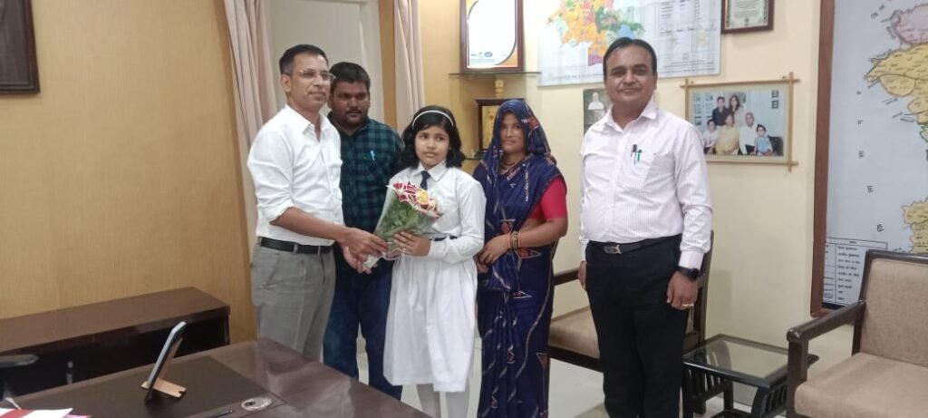 दमोह : कलेक्टर सुधीर कुमार कोचर ने कलेक्टर चेम्बर में भक्ति बाल्मींक को सम्मानित किया। ज्ञात हो कि भक्ति बाल्मीक का चयन सैनिक स्कूल रिवाड़ी हरयाणा में हुआ है। वे भक्ति नवोदय विद्यालय हटा में कक्षा 06 में अध्ययनरत् थी, इनके पिता श्री महेन्द्र बाल्मीक पशुपालन एवं डेयरी विभाग अंतर्गत पशु चिकित्सायलय बटियागढ़ में स्वच्छकार के पद पर पदस्थ है। इस दौरान भक्ति के माता-पिता, उपसंचालक पशुपालन एवं डेयरी विभाग डॉ. संजय पाण्डेय मौजूद रहे।