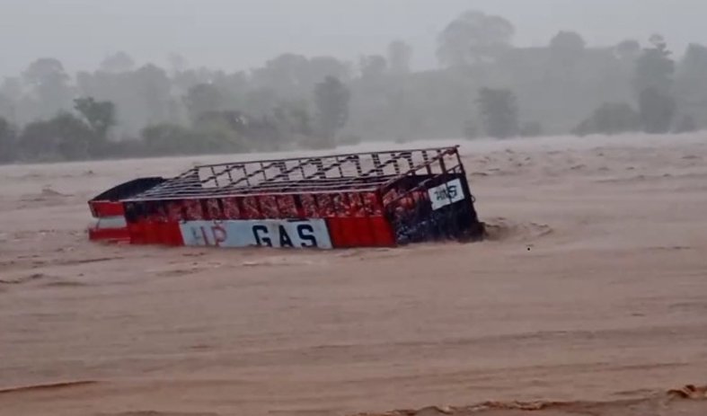उफनाती नदी में ट्रकों के बहने का वीडियो भी वायरल