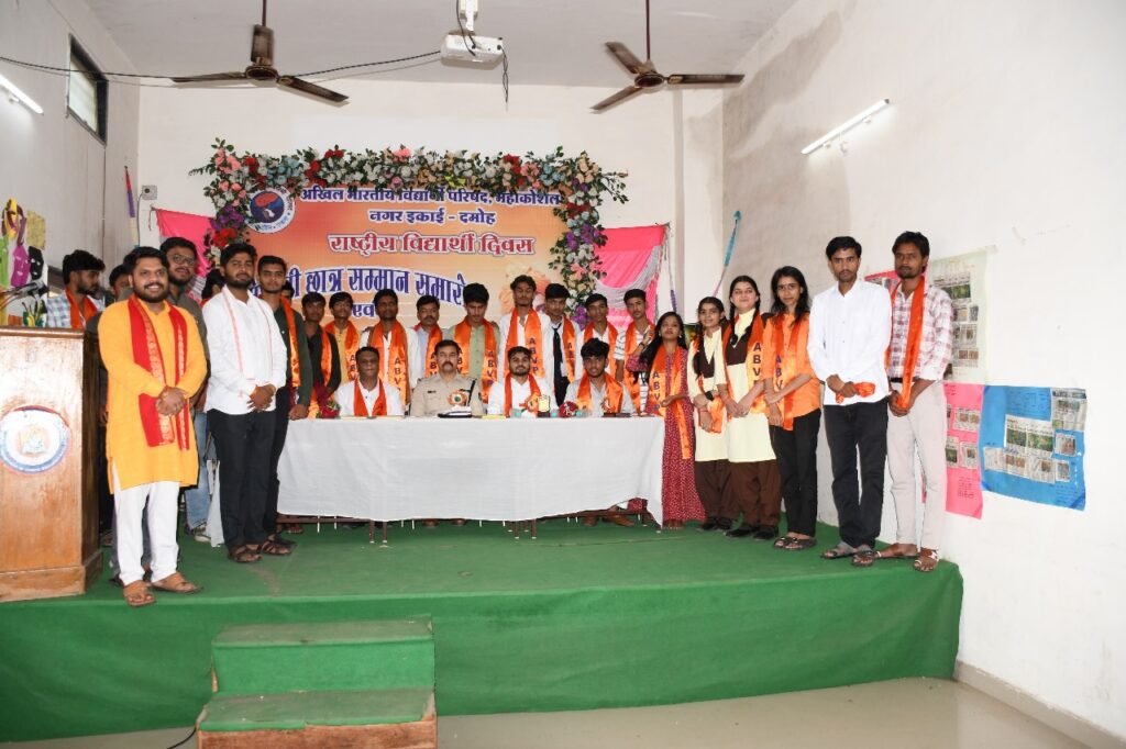 दमोह। अभाविप का स्थापना दिवस कार्यक्रम हुआ संपन्न। दमोह नगर में एबीवीपी के 77वें स्थापना दिवस पर मैधावी विद्यार्थी सम्मान समारोह का भव्य मंचीय कार्यक्रम हुआ । मंचासीन अतिथियों में रूप में महाकौशल प्रांत के प्रांत जिज्ञासा संयोजक रोहित पांडेय, दमोह कोतवाली टीआई मनीष कुमार, दमोह नगर के नगर अध्यक्ष राहुल चौहान नगर मंत्री ओम श्रीवास्तव उपस्थित रहे, कार्यक्रम के पश्चात अखिल भारतीय विद्यार्थी परिषद दमोह नगर की नवीन कार्यकारिणी घोषणा की गई जिसमें वर्ष 2025-26 हेतु मनीष नेमा को नगर अध्यक्ष एवं ओम श्रीवास्तव को नगर मंत्री हेतु मनोनीत किया गया।