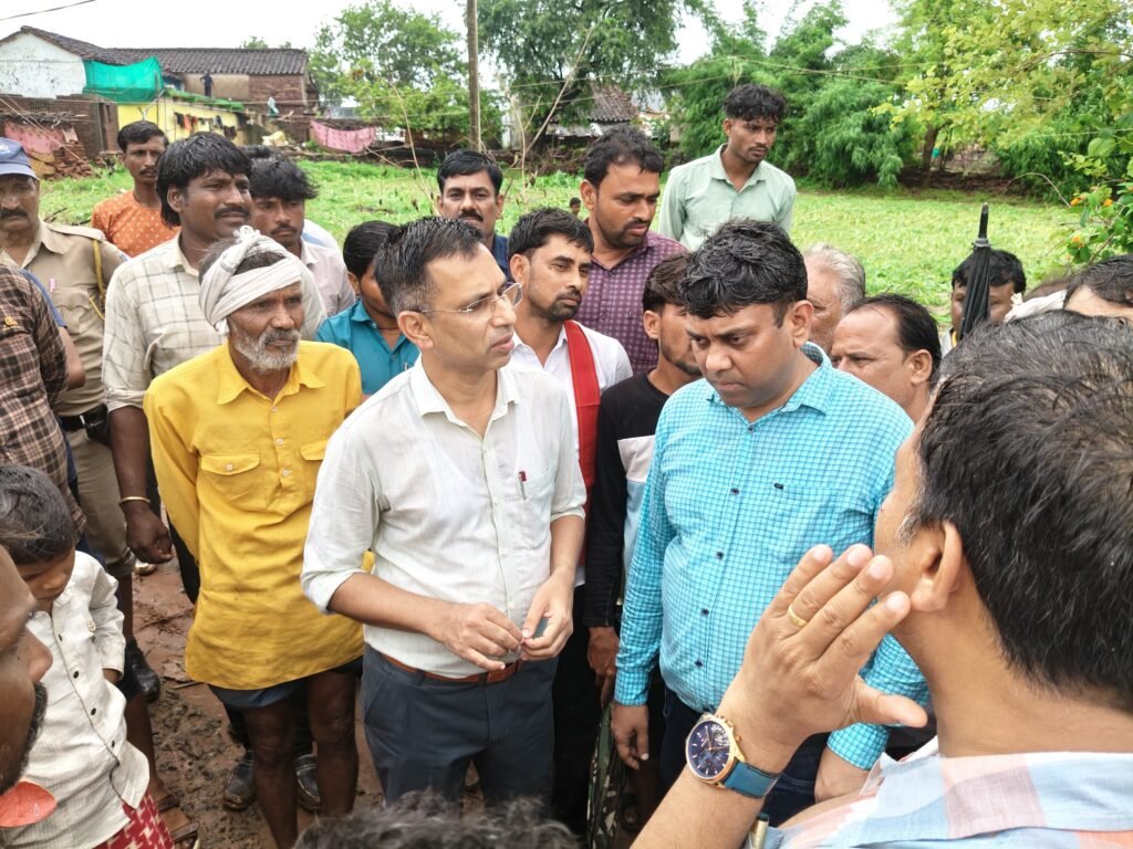 दमोह। दमोह सहित आसपास के जिलों में बारिश होने से दमोह जिले की नदी-नालों के किनारे बसे ग्रामों में पानी भरने से जहां संपत्ति की हानि हुई है, सर्वे किया जायेगा। मकान, फसल, पशु या अन्य संपत्ति का नुकसान होने पर सरकार द्वारा नियमानुसार मुआवजा दिया जायेगा । यह बात कलेक्टर सुधीर कुमार कोचर ने तेंदूखेड़ा क्षेत्र के तारादेही, खमतरा और जमरा सहित अन्य गांव के निवासियों से चर्चा करते हुये कही। कलेक्टर श्री कोचर ने सुबह 9 बजे से तेन्दूखेड़ा क्षेत्र भ्रमण पर निकले थे। उन्होंने ग्रामीणों से कहा अभी तहसीलदार, पटवारी सब अधिकारी यही हैं, एक-एक घर का ढंग से सर्वे कराया जायेगा। सर्वे कराने के बाद जिसके मकान, फसल, पशु या फिर कोई भी ऐसा नुकसान हुआ है, वह पूरा नोट करेंगे और उसका नियमानुसार केस बनेगा और जो नियम है सरकार का उसके अंतर्गत आगे कार्यवाही की जायेगी। सर्वे शुरू किया जा रहा हैं, जो लोग यहां के प्रभावित है वह अपना नाम लिखवा दें ताकि सर्वे का काम प्रारंभ हो जाये।