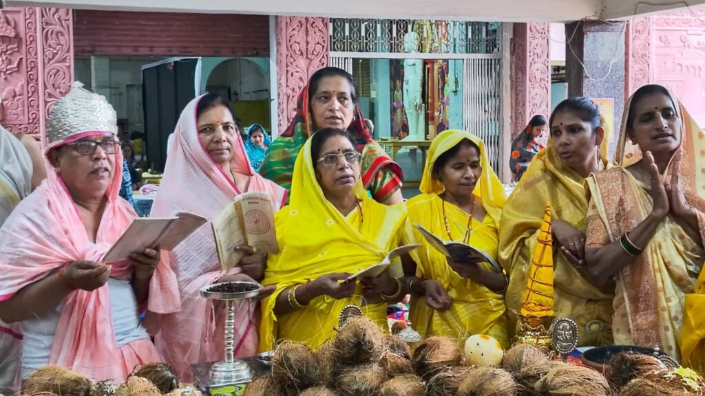 प्रतिष्ठाचार्य सुरेश शास्त्री, ब्रह्मचारी स्वतंत्र भैया एवं रोहित भैया के निर्देशन में प्रातः मेला में श्री जी के अभिषेक शांति धारा पूजन उपरांत महामंडल पर अर्घ्य समर्पण के साथ विधान की क्रिया संपन्न की जा रही है। विधान ध्वजारोहण कर्ता एनके जैन, सुनील महेंद्र करुणा वेजीटेरियन परिवार एवं समस्त द्रव्य प्रदान कर्ता पदमचंद जैन खजरी वाला परिवार, सोधर्मइंद्र राजेन्द्र अटल परिवार, भरत चक्रवर्ती पंकज जैन ‘मुंशी’ परिवार, कुबेरइंद्र संतोष जैन अविनाशी बनवार परिवार, महायज्ञ नायक मुकेश जैन अनिल फोटो परिवार एवं यज्ञ नायक चंद्र कुमार जैन खजरी परिवार के साथ सभी श्रावक श्रेष्ठि इंद्रजनो ने विधान के छटवे दिन श्रीजी का अभिषेक शांति धारा पूजन करके मंडल पर अर्घ्य चढ़ाने का सौभाग्य प्राप्त किया। शाम को भक्ति भाव के साथ महा आरती का आयोजन भी किया गया। विधान के सातवे दिन गुरुवारवार को भगवान पारसनाथ का निर्वाण कल्याणक महोत्सव मोक्ष सप्तमी का पर्व भक्ति भाव के साथ मनाते हुए निर्वाण चढ़ाया जाएगा। इस अवसर पर होने वाली 23 शांति धारा कर्ताओं का चयन भी किया जा चुका है। मंदिर कमेटी के अध्यक्ष नवीन निराला एवं महामंत्री राजकुमार जैन रानू ने सकल जैन समाज से सुबह 7 बजे से मंगल अभिषेक शांति धारा पूजन उपरांत विधान में शामिल होकर देवाधिदेव श्री शांतिनाथ भगवान के साथ श्री पारसनाथ भगवान की वृहत आराधना करके पुन्यार्जन की अपील की है।