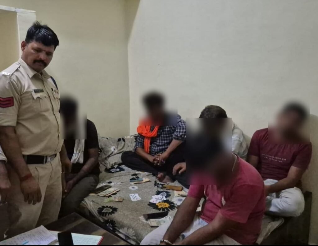 पुलिस ने दविश देकर लॉज के कमरे में हारजीत के दाव लगा रहे 5 जुआरियों सहित लॉज मैनेजर पर की कार्यवाही