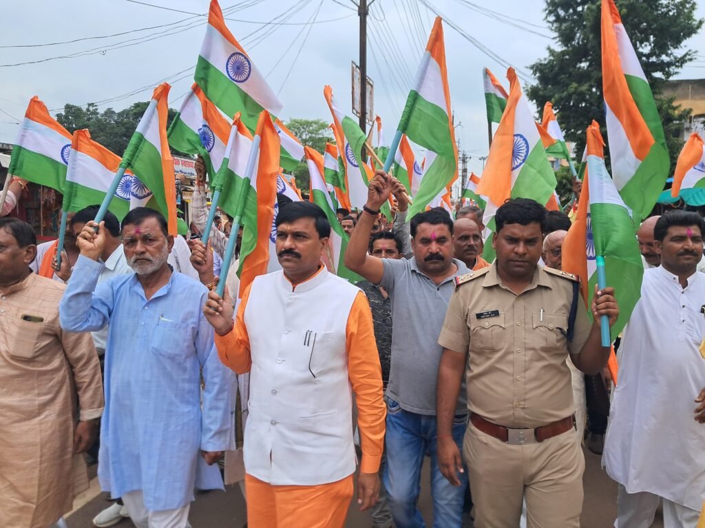 जबेरा । जबेरा विधानसभा के नगर तेंदूखेड़ा एवं जबेरा में नगर वासियों के द्वारा हर घर तिरंगा अभियान के तहत तिरंगा यात्रा का आयोजन किया गया। प्रधानमंत्री श्री नरेंद्र मोदी जी के आव्हान पर संपूर्ण देश में तिरंगा यात्रा निकाली जा रही हैं। इसी क्रम में आज विधानसभा में निकली गई तिरंगा यात्रा में प्रदेश के संस्कृति, पर्यटन, धार्मिक न्यास एवं धर्मस्व राज्यमंत्री श्री धर्मेंद्र सिंह लोधी सम्मिलित हुए। राज्यमंत्री श्री लोधी ने बताया अमृतकॉल के रूप में आजादी मना रहे हैं और आजादी में जिन्होंने अपना सर्वस्व निछावर कर दिया ऐसे महान वीर वीरांगनाओं एवं शहीदों को हम याद करके नमन करने का कार्य कर रहे हैं। आजादी के 75 वर्ष पूर्ण होने के पश्चात हम विकसित राष्ट्र की श्रेणी में 2047 तक प्रधानमंत्री जी के नेतृत्व में पहुंचेंगे। भव्य तिरंगा यात्रा में शामिल होकर देशभक्ति के अद्भुत दृश्य का साक्षी बना हूँ। जन-जन के उत्साह, जोश और उमंग ने यह सिद्ध कर दिया कि प्रधानमंत्री श्री नरेन्द्र जी का हर घर तिरंगा अभियान जनआंदोलन बन चुका है। तिरंगा सिर्फ एक ध्वज नहीं, यह हमारी एकता, सम्मान और गर्व का अमर प्रतीक है। इसकी शान हमेशा ऊँची रखना हम सभी का कर्तव्य है।