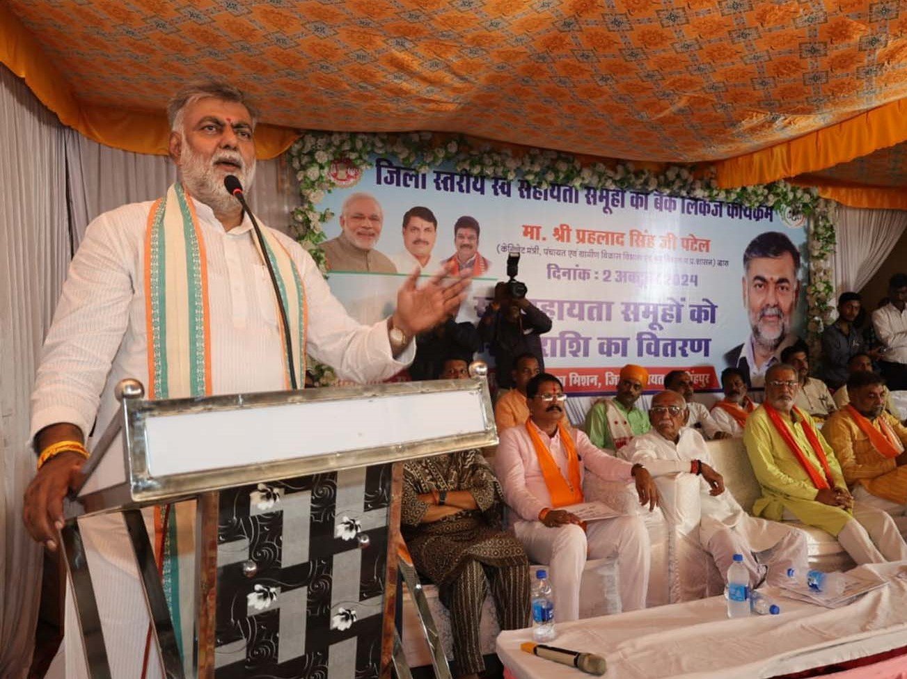 नरसिंहपुर । प्रदेश के पंचायत एवं ग्रामीण विकास व श्रम मंत्री प्रहलाद सिंह पटेल के मुख्य आतिथ्य में करेली में पुरानी गल्ला मंडी में जिला स्तरीय स्वसहायता समूहों का बैंक लिंकेज कार्यक्रम का आयोजन बुधवार को सम्पन्न हुआ। कार्यक्रम में अतिथियों ने 847 स्वसहायता समूहों को 30 करोड़ रुपये की राशि का वितरण किया। इस दौरान बैंक लिंकेज में उत्कृष्ट कार्य करने वालों का भी सम्मान किया गया।