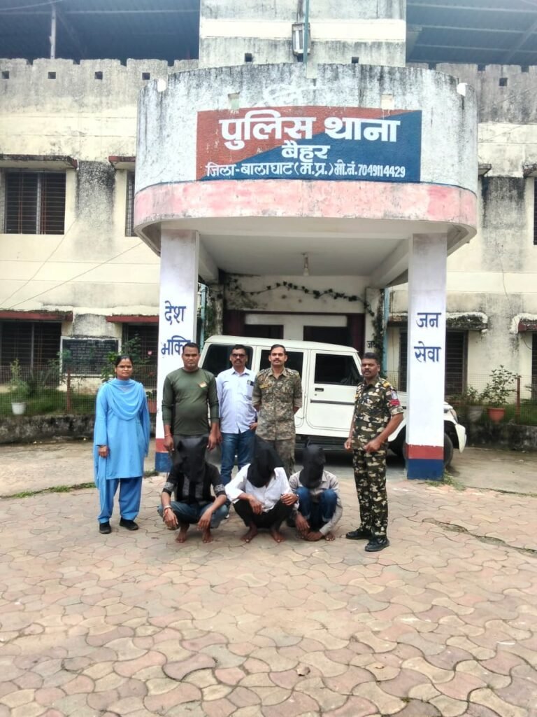 बालाघाट । बैहर थाना पुलिस ने 5 सितंबर की रात्रि हुई लूट के मामले का खुलासा किया है। इस मामले में तीन आरोपियों को गिरफ्तार किया है। गिरफ्तार आरोपियों में कटंगी थाना बैहर निवासी रितिक उर्फ छोटा पिता राजकुमार दीवान 22 वर्ष, कनकपुरी पिता राजेश गोस्वामी 23 वर्ष और गजानन नगर जिला वर्धा महाराष्ट्र निवासी सूरज पिता साजन नागेश्वर 20 वर्ष शामिल है। आरोपियों के पास से पुलिस ने मोबाइल फोन, कार की चाबी, नगद 7110 रुपए और घटना में प्रयुक्त बाइक को जब्त किया है।