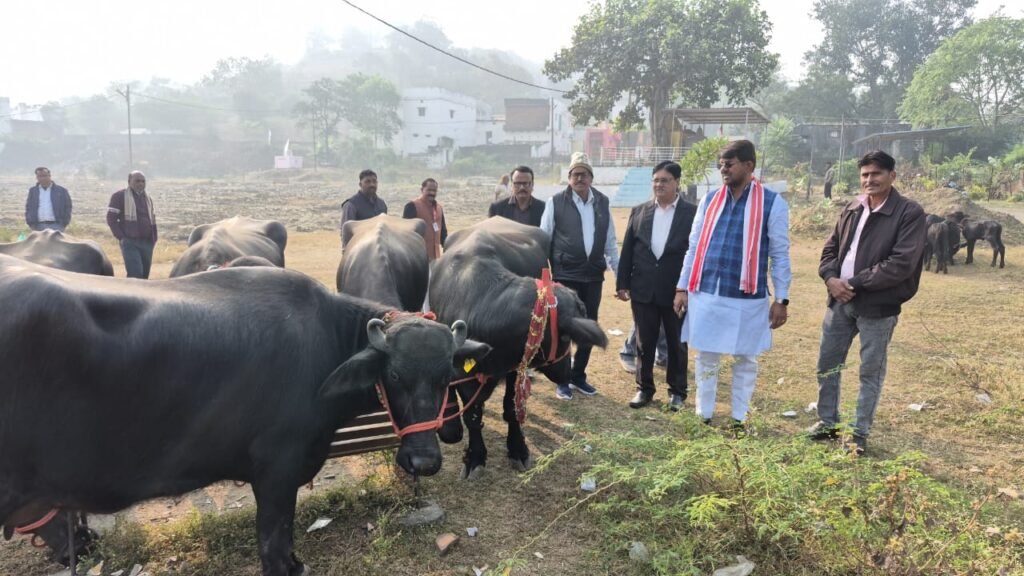 मुख्यमंत्री डेयरी प्लस योजना के तहत आज 9 हितग्राहियों को मुर्रा भैंसों का वितरण राज्यमंत्री श्री पटेल ने किया