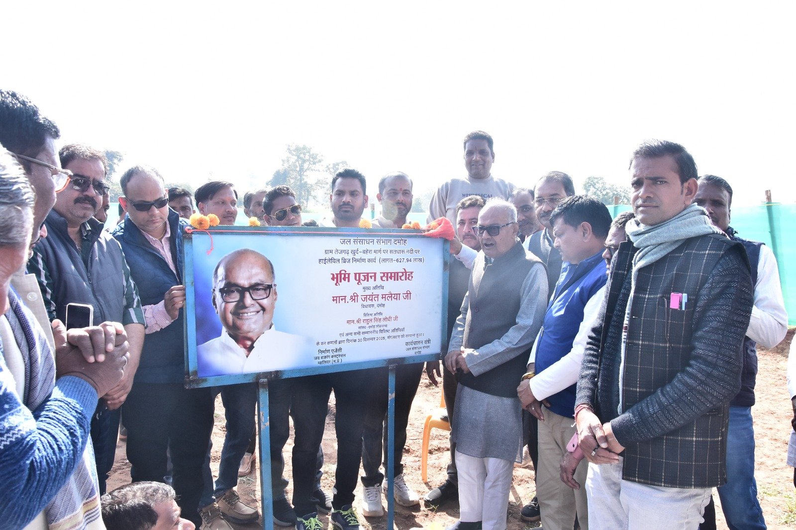 दमोह : विकास कार्यों ने गांवों की तस्वीर और तक़दीर दोनों बदल दी है, पूर्व में सोमखेड़ा क्षेत्र में ज़मीन ₹2 लाख प्रति एकड़ में भी खरीदने वाला नहीं मिलता था, लेकिन आज हालात यह हैं कि किसान उसी ज़मीन पर तीन फसलें ले रहा है, क्योंकि हर खेत तक पानी और हर गांव के हर घर तक नल से जल पहुंच रहा है, उस समय किसी ने अंदाज़ा भी नहीं लगाया था कि इतना बड़ा परिवर्तन संभव हो पाएगा। इस आशय के उद्गार दमोह विधायक एवं पूर्व विधायक जयंत मलैया नें सतधारू नदी पर प्रस्तावित तेजगढ़ खुर्द-बहरा मार्ग पर हाई लेवल ब्रिज निमार्ण कार्य लागत 627.94 लाख के भूमि पूजन के अवसर पर व्यक्त किए।
