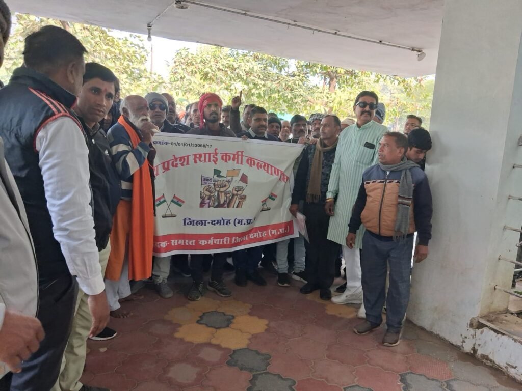 दमोह। प्रांतीय निकाय के आह्वान पर चार सूत्रीय मांगों को लेकर मध्य प्रदेश स्थाई कर्मचारी संघ ने कलेक्टर के माध्यम से मुख्यमंत्री को ज्ञापन सोपा जिसमें स्थाई कर्मचारी को सातवां वेतन एरियसर्स दिए जाने एवं शासकीय कर्मचारी के समान सभी सुविधाये, दैनिक वेतन भोगी सुरक्षा श्रमिक अंशकालीन कर्मचारियों को नियमित किया जाकर वेतनमान दिया जावे अंशकालीन कर्मचारियों को प्रत्येक माह की 5 तारीख तक भुगतान किया जावे आदि की मांग की गई है, ज्ञापन में जिला अध्यक्ष बबलू ठाकुर उपाध्यक्ष मुकेश तिवारी सचिव रूपनारायण विश्वकर्मा कोषाध्यक्ष रानू यादव, जनजाति अध्यक्ष दुर्जन लाल विश्वकर्मा उपाध्यक्ष संतोष खरे अंशकालिक अध्यक्ष वृंदावन मेहरा मीडिया प्रभारीवीरेंद्र कुमार जाटव के साथ जिले के सभी तहसील ब्लॉकों के कर्मचारी एवं महिलाओं का विशेष सहयोग दिया गया। इस ज्ञापन में संयुक्त मोर्चा संरक्षक राकेश सिंह हजारी अध्यक्ष सत्यनारायण तिवारी, स्वास्थ्य विभाग अध्यक्ष,के आर पांडेय प्रांतीय महामंत्री बी,एम, दुबे, कर्मचारी कांग्रेस विवेक दुबे, कर्मचारी कांग्रेस अध्यक्ष सुरेंद्र सिकर्रा, रोशन नायक, राज्य कर्मचारी संघ के सुरेंद्र राय, लघु वेतन कर्मचारी संघ के प्रमोद अहिरवार, आशीष पाठक भारत श्रीवास्तव, महबूब सिद्दीकी, लक्ष्मीकांत शुक्ला, जागेश्वर तिवारी दिनेश सक्सेना आलोक तिवारी सुरेश चौबे तीरथ ठाकुर संदीप मिश्रा, श्री राम दुबे, मनोज चौबे, मुन्ना सोनी, सुखलाल रजक बालचंद अहिरवार, अंगद सीग, रमेश कुमार अहिरवार दिनेश विदुआ, रज्जू अहिरवार, नजीर वेग खान, राम प्रकाश गोप, भुनेश्वर यादव, खरग्राम अठिया, विजय सिंग, धर्मदास, देवेंद्र चौबे, खुमान राय, गणेश गोड, मोती बाई, उर्मिला साहू, सुशीला, कलाबाई, बबलू जैन पटेरा भवानी यादव असगर खान, हनीफ खान, कमलेश चौबे, लुकन ठाकुर, धीरज सिंग, बलवंत सिंग, जीवन सिंग की उपस्थिति रहीं।