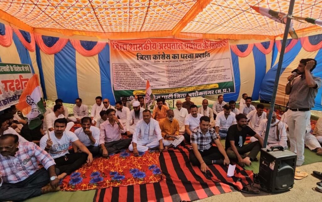 कलेक्ट्रेट के बाहर धरने पर बैठे विधायक सहित कांग्रेस कार्यकर्ता, सरकारी डॉक्टरों की प्राइवेट क्लीनिकों पर ताला लगाने की मांग