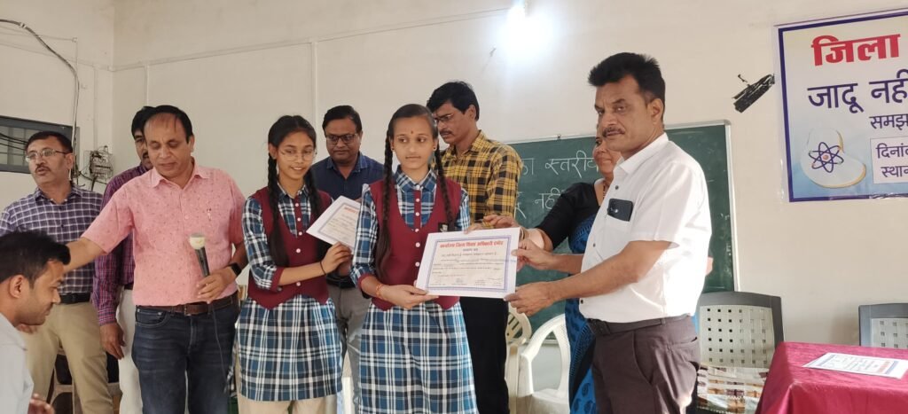 दमोह : कलेक्टर सुधीर कुमार कोचर के निर्देशन एवं जिला शिक्षा अधिकारी एस के नेमा के मार्गदर्शन में प्रति वर्षानुसार जादू नहीं विज्ञान हैं, समझना आसान हैं, अंतर्गत विज्ञान प्रदर्शनी का जिला स्तरीय आयोजन स्थानीय उत्कृष्ट विद्यालय दमोह में किया गया। सभी विकास खंडों के प्रतिभागियों ने भाग लिया। सर्वप्रथम कार्यक्रम के उद्घाटन सत्र में मुख्य अतिथि प्राचार्य डी के मिश्रा ने कहा समाज में व्याप्त अंधविश्वास एवं कुरीतियों को दूर करने के लिए शासन द्वारा इस तरह के आयोजन प्रतिवर्ष किए जाते हैं। इस दौरान छात्रों ने एक से बढ़कर एक नवाचार द्वारा कार्यक्रम के उद्देश्य को विद्यार्थियों तक पहुंचने में अपने प्रयोगों का प्रदर्शन किया। प्रतियोगिता में सी एम राइज तेंदूखेड़ा की छात्राएं प्रथम स्थान पर रही द्वितीय स्थान पर केरबना के विद्यार्थी रहे।समापन अवसर पर एडीपीसी एस के एस आसाटी, एपीसी मोहन राय द्वारा प्रतिभागी विद्यार्थियों को प्रमाण पत्र देकर सम्मानित किया गया। कार्यक्रम में उत्कृष्ट विद्यालय प्राचार्य संजय दुबे, सांगा प्राचार्य नूतन पटेरिया, शिक्षक आदित्य चौरसिया, कमलेश सेन, धर्मेंद्र चौबे, शरद मिश्रा, इसरार खान, सुधीर विश्वकर्मा, प्रदीप शर्मा, दीपक साहू, मनीषा जैन सहित मार्गदर्शी शिक्षक एवं विद्यार्थियों की उपस्थिति रही।