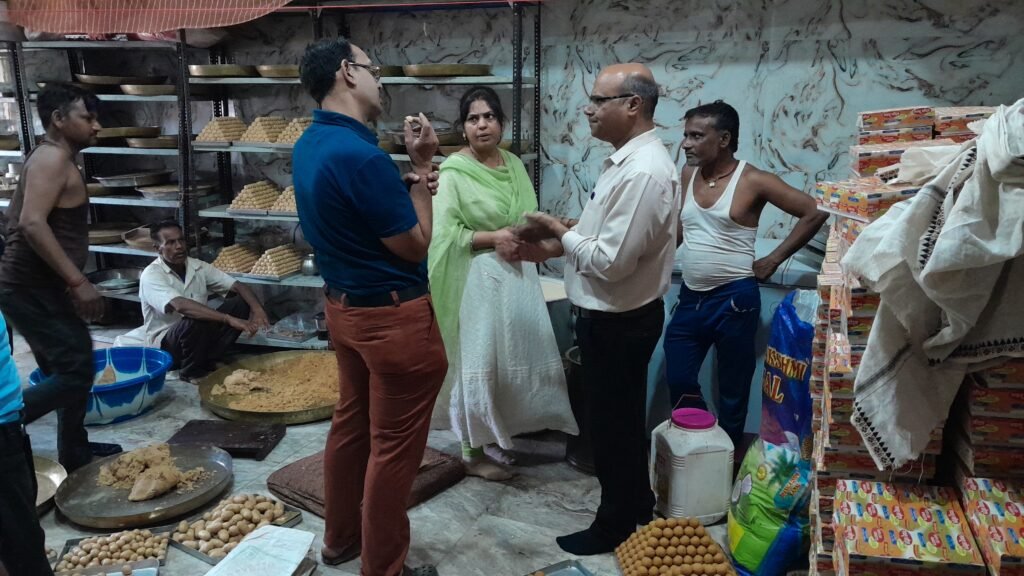 हटा । कलेक्टर सुधीर कुमार कोचर द्वारा दिये गये निर्देशों के तहत डी.ओ. खाद्य सुरक्षा प्रशासन राकेश अहिरवाल के मार्गदर्शन में खाद्य सुरक्षा एवं मानक अधिनियम 2006 के अंतर्गत खाद्य सुरक्षा अधिकारी माधवी बुधौलिया ने निरीक्षण कार्यवाही करते हुए दीपावली के त्यौहार के अवसर पर उपभोक्ताओं को शुद्ध एवं सुरक्षित खाद्य सामग्री उपलब्ध कराने के उद्देश्य से हटा नगर स्थित विभिन्न मिठाई दुकानों का औचक निरीक्षण किया। हटा नगर में निरीक्षण की कार्यवाही में बड़ा बाजार स्थित गफलू स्वीट्स से खोवा, दूध बर्फी, रामनारायण स्वीट्स से खोवा पेड़ा, शंकर गुजरात स्वीट्स से पिस्ता बर्फी एवं खट्टा मीठा नमकीन, आजाद वार्ड स्थित मुन्ना नेमा स्वीट्स से खोवा बर्फी एवं पिस्ता बर्फी एवं न्यू बजरंग स्वीट्स से मिल्क केक के नमूनें जांच हेतु लिए गए। जांच के दौरान गफलू स्वीट्स, रामनारायण स्वीट्स एवं मुन्ना नेमा स्वीट्स के परिसर में संग्रहित 2.46 क्विंटल बाजार मूल्य 45 हजार 900 रुपए का एक्सपायरी डेट कंपनी पैक्ड बी.सी. ब्रांड रसगुल्ला, रसभरी, मिल्क केक एवं बर्फी को नियमानुसार जब्त करके मौके पर विनष्टीकरण करवाया गया। इन नमूनों को जांच हेतु खाद्य परीक्षण प्रयोगशाला भेजा गया है। जांच रिपोर्ट प्राप्त होने पर नियमानुसार वैधानिक कार्यवाही की जाएगी।