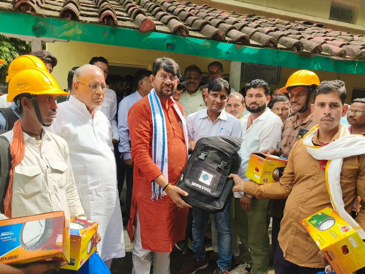 दमोह : प्रदेश के पशु पालन एवं डेयरी विभाग राज्यमंत्री (स्वतंत्र प्रभार) श्री लखन पटैल ने विद्युत वितरण केंद्र बटियागढ़ के लाइन कर्मचारियों को संभाग दमोह के द्वारा प्रदत सुरक्षा उपकरणों की किट प्रदान की। उन्होंने लाइन कर्मचारियों को सुरक्षा उपकरणों का उपयोग करते हुए सावधानीपूर्वक लाइन संबंधी कार्य करते हुये उपभोक्ताओं को सतत विद्युत प्रदाय करने हेतु निर्देशित किया। इस मौके पर विद्युत विभाग की सहायक अभियंता संदीप पटेल सहायक लाइनमैन बेटू लाल कुशवाहा, सहायक लाइन अर्जुन विश्वकर्मा, दिलीप सिंह दांगी, प्रहलाद साहू, धर्मेंद्र सिंह, सोनू तिवारी, पूरन पटैल के साथ समस्त कर्मचारियों की उपस्थिति रही।