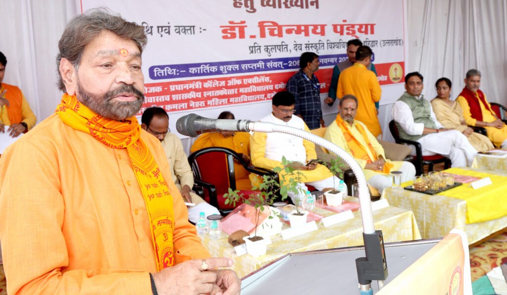 उन्होंने कहा आज की तारीख में गायत्री परिवार 16 करोड़ परिवार हैं। मैं सभी से निवेदन करूंगा कि एक व्यक्ति को गोद लें, मन में संकल्प लें जो नशा करता हैं उसका नशा छुड़ाने का संकल्प लें, ऐसा करने से हमें भारत के भविष्य को उज्जवल करने से कोई रोक नहीं सकता। अवसर सौभाग्य तब बदलते हैं, जब हम उन्हें पहचानने का सामर्थ रखते हैं, जिस समय हम मिल रहे हैं, वह समय भारत के जागरण, भारतीय संस्कृति अभिमान, गौरव की बेला में हम सब की मुलाकात हो रही हैं। इंसान को इंसान बनाने की कोई एक भूमि रही । प्रदेश के संस्कृति, पर्यटन, धार्मिक न्यास एवं धर्मस्व राज्यमंत्री (स्वतंत्र प्रभार) धर्मेन्द्र सिंह लोधी ने कहा हम अपनी भारतीय संस्कृति एवं ज्ञान परंपरा को जाने, पूर्वजों पर गर्व करें, उनके बारे में पढ़ें तो निश्चित रूप से हमें गौरव की अनुभूति होगी। श्री लोधी ने कहा इस महा विद्यालय से मेरा पुराना नाता हैं, बीएससी गणित एवं एमए यहीं से पढ़ाई की। एक गौरव के अनुभूति होती है कि जिस कॉलेज में मैं पढ़ा उसी कॉलेज के परिसर में आप सबके बीच में व्याख्यान देने का अवसर मिला।