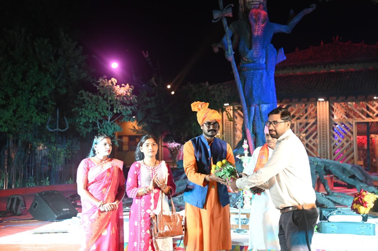 खजुराहो। मध्यप्रदेश शासन संस्कृति विभाग द्वारा स्थापित ‘आदिवर्त‘ जनजातीय लोककला राज्य संग्रहालय- खजुराहो में प्रत्येक रविवार को नृत्य, नाट्य, गायन एवं वादन पर केन्द्रित समारोह ‘देशज‘ का आयोजन किया जाता रहा है। शासन के निर्देशानुसार माह नवम्बर 2024 से प्रत्येक शनिवार को भी गतिविधिया आयोजित की जानी है । माह नवम्बर 2024 से प्रत्येक शनिवार एवं रविवार को देशज समारोह का आयोजन किया जा रहा है । इसीक्रम में शनिवार 09 नवंबर, 2024 को सायं 06.00 श्री बृजलाल कुशवाहा एवं साथी, छतरपुर द्वारा ‘बुन्देली संस्कार गीत एवं भजन‘ की प्रस्तुति दी गई। गतिविधि की शुरुआत दीप प्रज्वलन एवं कलाकारों के स्वागत से की गई। प्रस्तुति के दौरान कलाकारों ने बुन्देली संस्कार गीतों की प्रस्तुति दी। अगली प्रस्तुति सुश्री कमलेश कुमारी एवं साथी छतरपुर द्वारा बुन्देली संस्कार गीत की प्रस्तुति दी गई। अंतिम प्रस्तुती श्री भगवान चरण द्विवेदी एवं साथी, खजुराहो बुन्देली संस्कार गीतों की प्रस्तुति दी।