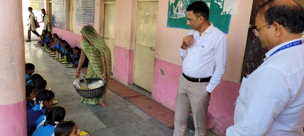 कलेक्टर श्री कोचर जब स्कूल पहुंचे तो मध्यान्ह भोजन चल रहा था, उन्होंने एक छात्रा भावना कोरी से भोजन लेकर चखा। मध्यान्ह भोजन में कढ़ी और पुलाव परोसा गया। इस मौके पर मध्यान्ह भोजन के संबंध में आवश्यक निर्देश दिये।
