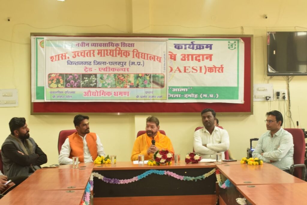 दमोह : मुख्यमंत्री डॉ. मोहन यादव एवं स्कूल शिक्षा मंत्री राव उदय प्रताप सिंह की मंशानुशार शासकीय उच्चतर माध्यमिक विद्यालय किशनगढ़ जिला छतरपुर के नवीन व्यावसायिक शिक्षा के अंतर्गत ट्रेड एग्रीकल्चर के छात्र-छात्राओं को कृषि विज्ञान केंद्र दमोह का औद्योगिक भ्रमण कराया गया, जिसमें वरिष्ठ कृषि वैज्ञानिक एवं कृषि विज्ञान केंद्र के अधिकारियों द्वारा छात्र-छात्राओं को अपना मार्गदर्शन प्रदान किया गया। कार्यक्रम मे मुख्य अतिथि के रूप में राज्य पिछड़ा वर्ग आयोग के अध्यक्ष डॉ. रामकृष्ण कुसमरिया रहे। विशिष्ट अतिथि के रुप में दमोह जिले के यूथ अचीवर्स कृष्णा पटेल, शंकर गौतम एवं अरविंद लोधी उपस्थित रहे।