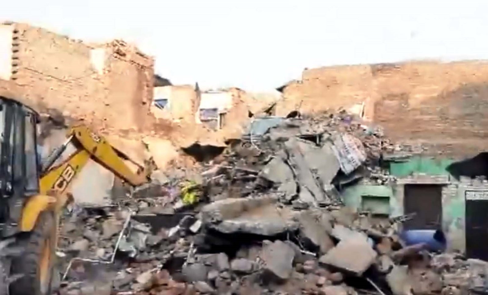 आसपास के मकान भी धराशाही, जेसीबी से हटाया जा रहा मलबा