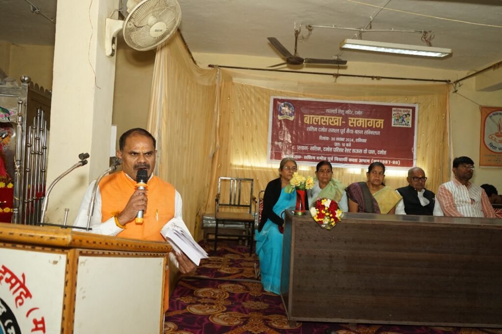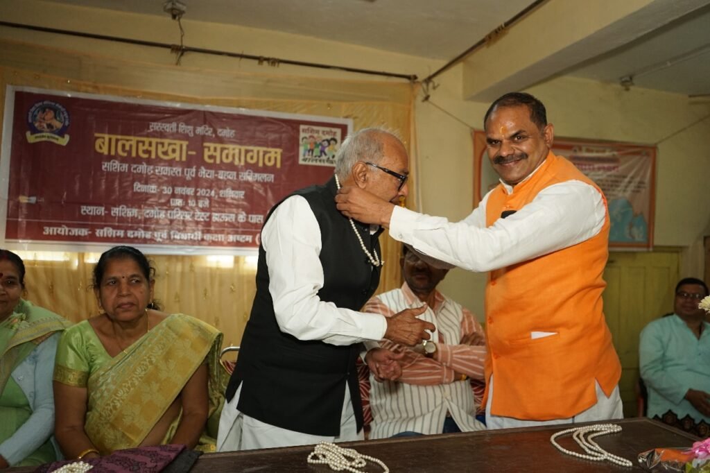 दमोह / सरस्वती शिशु मंदिर पूर्व छात्र छात्राओं का मिलन समारोह बाल सखा समागम हर्षौल्लास के साथ सरस्वती शिशु मंदिर में सम्पन्न हुआ।।सरस्वती शिशु मंदिर दमोह में हुए बालसखा मिलन कार्यक्रम में ऐसा एक भी पल नही गुजरा जो बचपन की सुखद समृतियो से अछूता रहा हो।कार्यक्रम की शुरुआत मंगल दीप के दीपायन से हुई जिसमें मुख्य अतिथि पूर्व वित्त मंत्री जयंत मलैया एवं राज्यमंत्री लखन पटेल के अलावा सरस्वती शिशु मंदिर की पूर्व प्राचार्या गुणमाला जैन, मुन्नी दीदी, कसुम खरे दीदी ने सहभागिता दर्ज कराई। स्वागत भाषण कार्यक्रम प्रभारी सत्येंद्र साहू प्रस्तुत करते हुए कहा कि 2012में ऐतिहासिक कार्यक्रम हुआ था 12साल बाद फिर पूर्व छात्र छात्राओं का मिलन समारोह आयोजित करने जा रहे हैं। जिसमें मुख्य रूप से पूर्व दीदी आचार्य जी का सम्मान पूजन किया गया। वर्तमान के प्राचार्य जी आचार्य जी दीदी जी का पूजन कर सम्मान किया एवं पूर्व सीनियर छात्र छात्राओं का सम्मान किया गया। इसके बाद अतिथियों का सम्मान किया गया। सभी दूर दूर से आए भैया बहिनों ने अपना परिचय दिया।