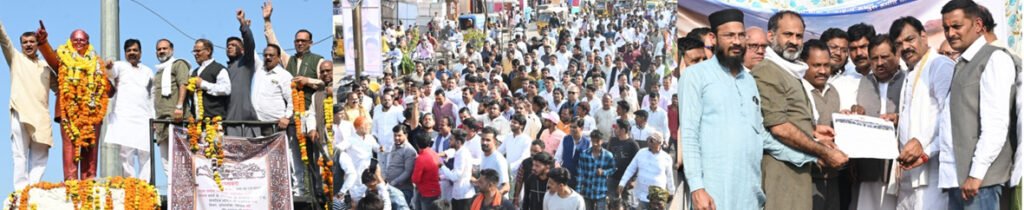 जबलपुर। पूर्व कैबिनेट मंत्री और विधायक लखन घनघोरिया के नेतृत्व में फ्लाईओवर की मांग को लेकर बड़ा प्रदर्शन किया गया। अम्बेडकर चौक से रद्दी चौकी तक पदयात्रा निकाली गई। इस दौरान बड़ी संख्या में कांग्रेस जन और आम शहरवासी उपस्थित रहे। पदयात्रा का आरंभ अम्बेडकर चौक स्थित बाबा साहब की प्रतिमा पर माल्यार्पण से हुआ, जिसके बाद पदयात्रा घमापुर, शीतलामाई, मदार टेकरी, बहोराबाग होते हुए शहीद अब्दुल हमीद चौक (रद्दी चौकी) पहुंची। मुख्यमंत्री के नाम ज्ञापन प्रशासनिक अधिकारियों को सौंपा गया, जिसमें मांग की गई कि 2019 की स्थिति में स्वीकृत अम्बेडकर चौक – रद्दी चौकी फ्लाईओवर का निर्माणकार शीघ्र प्रारंभ कराया जाए। इस दौरान नगर अध्यक्ष सौरभ शर्मा, नेता प्रतिपक्ष अमरीश मिश्रा, वरिष्ठ कांग्रेस नेता दिनेश यादव, कदीर सोनी, सतीश उपाध्याय, कल्लन गुप्ता, जितेंद्र सिंह ठाकुर, याकूब अंसारी, डॉ.रमाकांत रावत, कलीम खान, संजय साहू, प्रमोद पटेल, राकेश पांडे, शफीक हीरा, अभिषेक चंदेल, असित यादव सहित कांग्रेस पदाधिकारी, पार्षद, कार्यकर्ता एवं आमजन उपस्थित रहे।