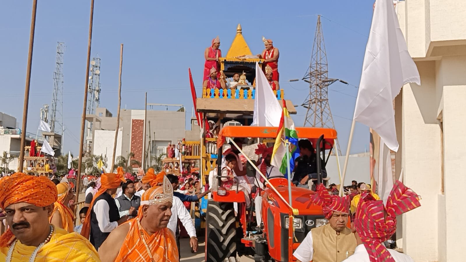 दमोह। आचार्य श्री का वैभव और पुण्य अद्भुत था वक्त गुजर रहा है किंतु श्रद्धा वही है घट बदला है किंतु अमृत वही है हम मुस्कुरा रहे हैं किंतु आंखें नम है साथ सभी का है किंतु आचार्य श्री की कमी है आचार्य श्री ने शिवनगर के इस पंचकल्याणक महोत्सव के लिए अपने दोनों हाथों से आशीर्वाद दिया था पंचकल्याणक के लिए हम सबके लिए गुरु आज्ञा सर्वोपरि थी और इस आशीर्वाद से यह पंचकल्याणक सानंद संपन्न हुआ जैन धर्म की प्रभावना के लिए यह एक महत्वपूर्ण कार्य हुआ है आप सभी ने बढ़ चढ़कर उत्साह पूर्वक भाग लिया है अनेक मंडलों ने इसमें पूरे मनोयोग से अपनी सहभागिता की है। उपरोक्त उदगार निर्यापक मुनि श्री अभय सागर जी महाराज एवं एवं मुनि श्री प्रयोग सागर जी महाराज ने पंचकल्याण गजरथ फेरी के प्रातःकाल मोक्ष कल्याणक पर अभिव्यक्त किय इस अवसर पर मंदिर के शिखर पर कलसा रोहन करने का सौभाग्य अभय बनगांव परिवार को तथा ध्वज आरोहण का सौभाग्य निर्मल कुमार सुनील महेंद्र करुणा वेजीटेरियन परिवार को प्राप्त हुआ इसके बाद विधि नायक प्रतिमा का अभिषेक करने का सौभाग्य सुबोध जैन सुधीर सिंघई संतोष सिंघई एवं महेश दिगंबर परिवार को प्राप्त हुआ इसके पश्चात सभी प्रतिमा जी को मंत्र उच्चारण के साथ स्थापित किया गया इस मौके पर आचार्य विद्यासागर श्रावक कल्याण समिति के द्वारा डॉ गौरव नायक का विद्या चिकित्सा रत्न पुरस्कार देकर सम्मानित किया इसके पूर्व महेश बढ़कूल को विद्या श्रावक रत्न पुरस्कार देकर सम्मानित किया था। इसके बाद दोपहर में मुनि संघ के मंगल सानिध्य में भव्य गजरथ फेरी प्रारंभ हुई फेरी में बड़ी संख्या में श्रद्धालुगन एकत्रित हुए गजराज सबसे आगे फेरी का नेतृत्व कर रहा था जिस पर सौधर्मेंद्र विराजमान होकर धर्म ध्वज लेकर आगे बढ़ रहे थे तीन रथ में इंद्रायणी गण अपनी वेशभूषा पहनकर जयकारे लगाते हुए बैठे हुए थे गजरथ फेरी को बहुत ही आकर्षक ढंग से संचालित किया जा रहा था ऐरावत हाथी फेरी में आकर्षण का केंद्र था तीनों रथों की सबसे आगे निर्यापक मुनि श्री अभय सागर जी महाराज अपने पूरे संघ के साथ परिक्रमा में आगे बढ़ रहे थे फेरी में प्रतिष्ठाचार्य जयकुमार जी निशांत पंडित आशीष जैन निर्देशन प्रदान कर रहे थे मध्य प्रदेश के पूर्व वित्त मंत्री जयंत मलैया कुंडलपुर क्षेत्र कमेटी के पूर्व अध्यक्ष संतोष सिंघई वर्तमान अध्यक्ष चंद्र कुमार सराफ जैन पंचायत अध्यक्ष सुधीर सिंघई महामंत्री पदम खली महोत्सव के संयोजक महेश दिगंबर ओजाशिनी विश्वविद्यालय की कुलधिपति डॉ सुधा मलैया सहसंयोजक रिशु सिंघई प्रथम रथ में सुनील डुबलिया रिंकू खजरी सिद्धार्थ नायक दूसरे रथ में श्रेयांश लहरी माता-पिता मनीष मलैया विवेक नायक शशांक जैन तीसरे रथ में अभय जी बनगांव सु