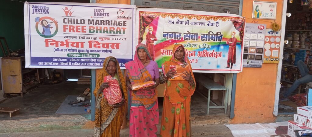 हिण्डोरिया:- स्थानीय मेन मार्केट स्थित स्व. जीपी चौबे आवास परिसर में संकल्प समाज सेवी संस्था दमोह एवं किशोरी शक्ति दल एवं नगर सेवा समिति हिंडोरिया के संयुक्त तत्वाधान में निर्भया दिवस मनाया गया । इस मौके पर जरूरतमंद महिलाओं को साड़ियों का भी वितरण कर बाल विवाह रोकने सामुहिक शपथ भी दिलाई गई। साथ ही मोमबत्ती जलाकर स्व. निर्भया को श्रृध्दांजलि भी अर्पित की गई।