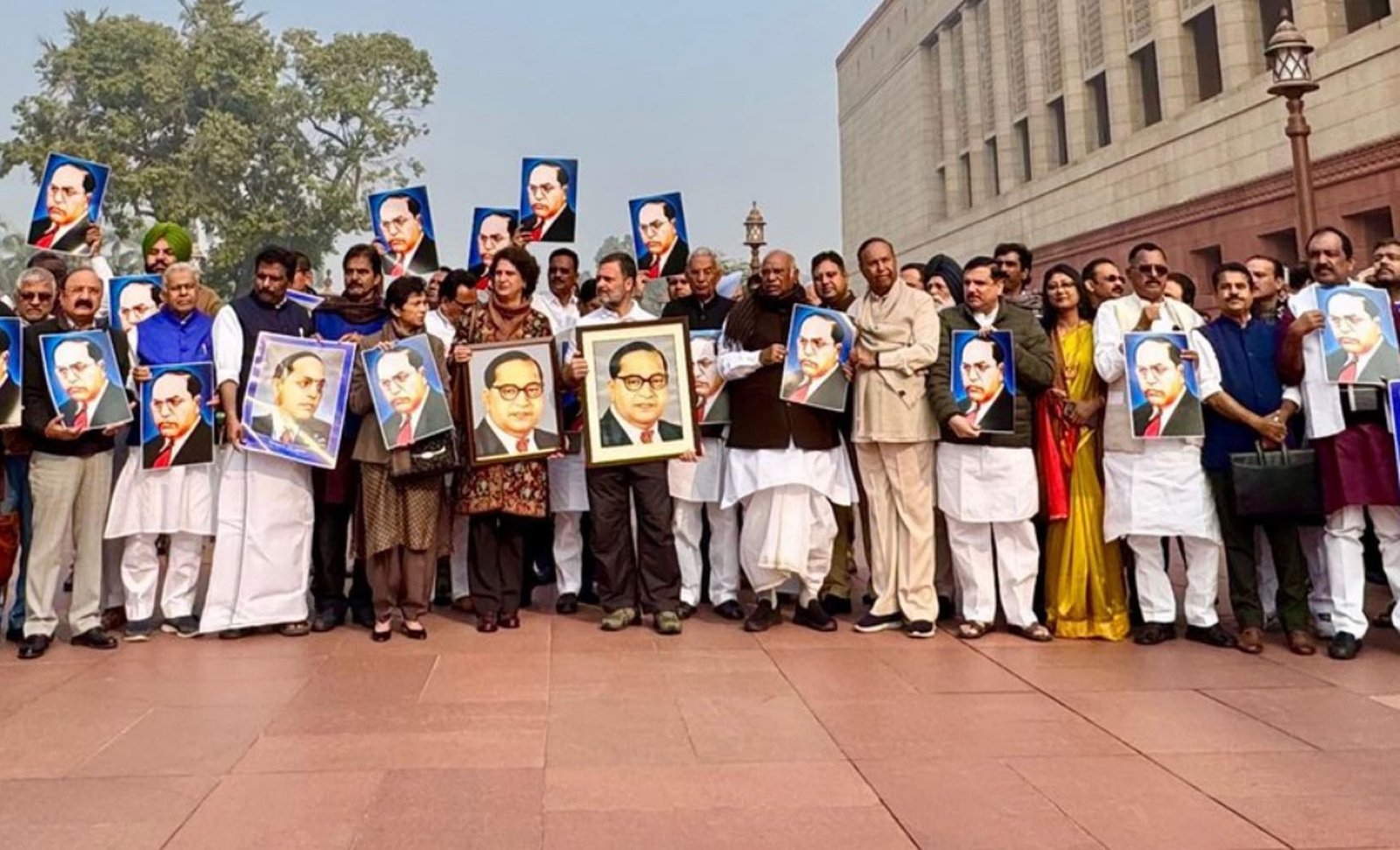 नई दिल्ली। संसद में शीतकालीन सत्र चल रहा है, इस बीच बुधवार को विपक्ष ने बाबा साहेब आंबेडकर मामले को लेकर जोरदार हंगामा किया है। कांग्रेस और अन्य विपक्षी सांसदों ने आरोप लगाया है कि गृहमंत्री अमित शाह ने बाबा साहेब का अपमान किया है और उन्हें माफी मांगनी चाहिए। इसे लेकर कांग्रेस सांसद और लोकसभा में विपक्ष के नेता राहुल गांधी और प्रियंका गांधी की अगुवाई में इंडिया गठबंधन ने संसद के गेट पर प्रदर्शन किया है।
