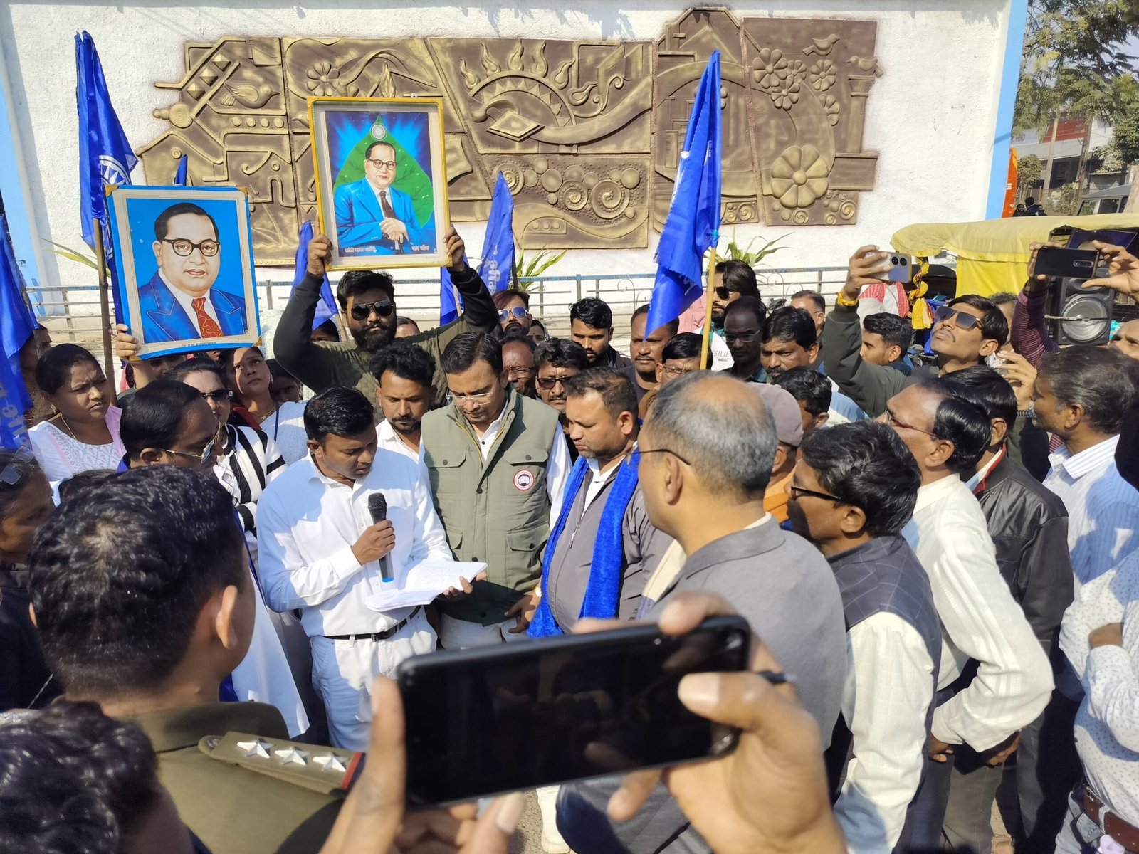 प्रदर्शनकारियों ने बताया कि 17 दिसंबर को देश के गृह मंत्री अमित शाह ने संसद सत्र के दौरान डॉ. बाबा साहब आंबेडकर पर टिप्पणी की है। इस टिप्पणी से आंबेडकर अनुयायियों की भावनाएं आहत हुई है। जबकि भारत के संविधान में डॉ. बाबा साहब आंबेडकर ने किसी भी धर्म को मानने की स्वतंत्रता दी है। लेकिन गृह मंत्री अमित शाह द्वारा किसी एक धार्मिक वर्ग के पक्ष में धार्मिक भावना भडक़ाकर भगवान का मानने के लिए प्रेरित कर रहे हैं। जिससे अन्य धर्मों के मानने वालों की भी भावनाएं आहत हुई है। इतना ही नहीं गृह मंत्री ने डॉ बाबा साहब आंबेडकर को नीचा दिखाने की भी कोशिश की है। इस परिस्थिति में गृह मंत्री के खिलाफ धार्मिक भावनाएं आहत करने का अपराध पंजीबद्ध किया जाना चाहिए। इतना ही नहीं गृह मंत्री को तत्काल ही देश और आंबेडकर अनुयायियों से माफी भी मांगना चाहिए। इसके अलावा उन्होंने अनेक बातें कही। इस अवसर पर बड़ी संख्या में लोग मौजूद थे।