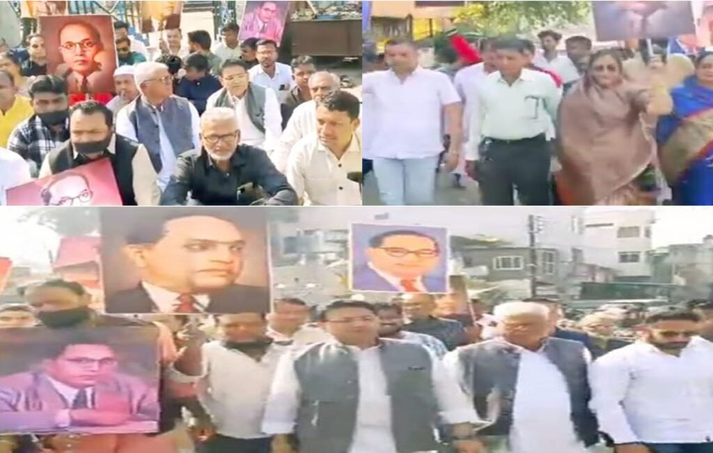 बुरहानपुर । देश की संसद में गृहमंत्री अमित शाह के द्वारा संविधान निर्माता डॉ. बाबा साहेब अंबेडकर पर अशोभनीय टिप्पणी पर देश भर में कांग्रेस आक्रोशित है। गुरुवार को इसके विरोध में अंबेडकर चौक स्थित अंबेडकर प्रतिमा के समक्ष कांग्रेस ने मौन धरना देकर इसका विरोध करते हुए एक ज्ञापन राष्ट्रपति को संबोधित एसडीएम को देकर मांग की गई के गृहमंत्री अमित शाह को तुरंत पद से बर्खास्त किया जाए कांग्रेस नेता अजय रघुवंशी जिला अध्यक्ष रिंकू टॉक युवा नेता हर्षित ठाकुर व अन्य ने कहा कि भाजपा सत्ता के नशे में चूर है जिस संविधान निर्माता के संविधान के तहत गृहमंत्री संवैधानिक पद पर बैठे हैं उसी के लिए अशोभनीय ने टिप्पणी संसद में बैठकर कर रहे हैं, गृहमंत्री की अशोभनीय टिप्पणी के विरोध में होने वाले इस मौन धरने में कांग्रेस के सभी गुट के नेता एक मंच पर नजर आए और जमकर विरोध किया दोपहर 1 बजे मौन धरने पर बैठे कांग्रेसी अंबेडकर प्रतिमा से एसडीएम कार्यालय तक पैदल मार्च करते हुए पहुंचे यहां उनके द्वारा अपना विरोध प्रकट कर राष्ट्रपति के नाम संबोधित ज्ञापन एसडीएम को दिया गृहमंत्री अमित शाह की डॉ बाबा साहेब अंबेडकर के लिए अशोभनीय टिप्पणी पर समाज जनों में भी रोष देखा गया है।
