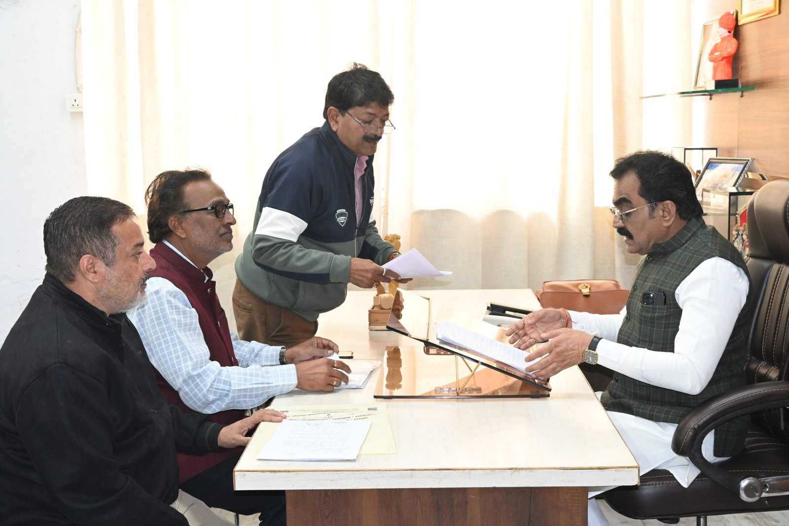 जबलपुर। लोक निर्माण मंत्री राकेश सिंह ने मदन महल के पास स्थित नागपाल गार्डन में आम जनों से भेंट की। साथ ही उनकी समस्याओं को सुना तथा संबंधित अधिकारियों को निर्देशित किया कि आमजन की समस्याओं का निराकरण प्राथमिकता से करें। लोगों ने बिजली, पानी, साफ सफाई, समग्र आईडी, आर्थिक सहायता आदि से संबंधित आवेदन दिए। मंत्री श्री सिंह ने कार्यकर्ताओं से भी भेंट की। इस दौरान अतुल सिंह ठाकुर, पंकज दुबे सहित अन्य गणमान्य नागरिक सहित संबंधित अधिकारी मौजूद थे।
