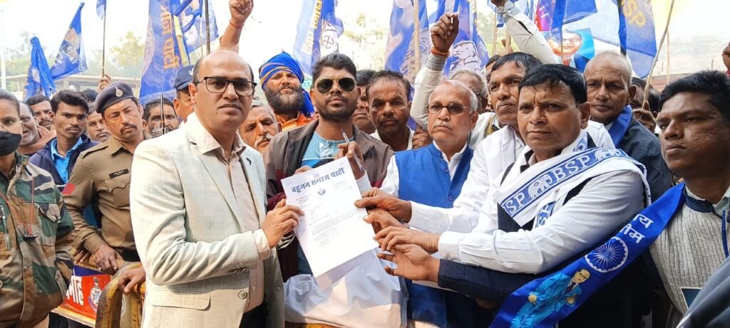 दमोह। बसपा दमोह द्वारा राष्ट्रव्यापी आंदोलन के तहत कु.मायावती के निर्देश पर केन्द्रीय मंत्री श्री अमित शाह द्वारा बाबा साहब के संबंध में संसद में की गई अमर्यादित टिप्पणी के खिलाफ में विरोध प्रदर्शन एवं ज्ञापन दिया। ज्ञापन कार्यवाही में जिले के विभिन्न क्षेत्रों से सैंकड़ो कार्यकर्ता उपस्थित हुए। बाबा साहब की प्रतिमा पर माल्यार्पण नारेबाजी करते हुए श्री अमित शाह से माफी मांगने एवं इस्तीफा देने की मांग की गयी। मुख्य रूप से डॉ. रावण वर्मा (जिला प्रभारी दमोह सागर) आशाराम चौधरी जिला प्रभारी दमोह तथा जिला एवं विधानसभा के समस्त पदाधिकारी उपस्थित हुए। जिलाध्यक्ष ने जिला प्रशासन के समक्ष ज्ञापन का वाचन कर महामहिम राष्ट्रपति के नाम ज्ञापन सौंपा। क्षेत्रीय समस्या ग्राम कोटा में बाबा साहब डॉ.अंबेडकर जी की प्रतिमा को असामाजिक तत्वों ने विगत दिनों में क्षतिग्रस्त कर दिया गया आरोपीगण के विरूद्व सख्त कार्यवाही करने एवं नवीन प्रतिमा स्थापित करने के संबंध में भी पृथक से ज्ञापन सौंपा।