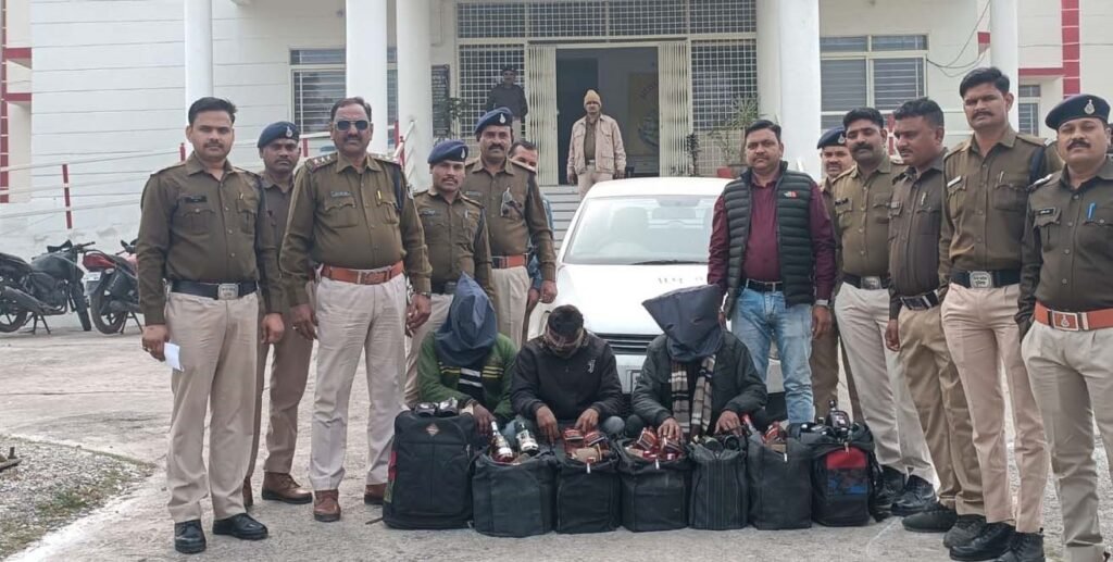 अशोकनगर। जिले की मुंगावली थाना पुलिस ने बुधवार को एक सफेद रंग की कार से 90 लीटर अवैध शराब जब्त की है। पुलिस ने इस मामले में तीन आरोपियो को गिरफ्तार किया है। पुलिस ने जब्त शराब की कीमत 1 लाख रुपए बताई है।