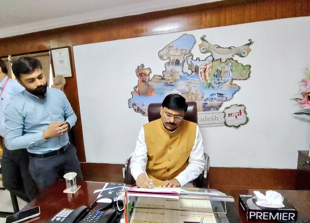 दमोह : प्रदेश सरकार के संस्कृति, पर्यटन, धार्मिक न्यास एवं धर्मस्व राज्यमंत्री श्री धर्मेंद्र भाव सिंह लोधी ने भदभदा रोड स्थित मध्यप्रदेश राज्य पर्यटन विकास निगम के कार्यालय पहुंचकर पूजा अर्चना कर अध्यक्ष पद का कार्यभार ग्रहण किया।राज्यमंत्री श्री लोधी ने निगम के वरिष्ठ अधिकारियों से परिचय प्राप्त किया और आगामी कार्ययोजना की समीक्षा की। राज्यमंत्री श्री लोधी ने इस दौरान अधिकारियों को निर्माण कार्यों और निगम द्वारा संचालित होटलों से संबंधित आवश्यक निर्देश दिए। इस दौरान मध्यप्रदेश राज्य पर्यटन विकास निगम के एमडी टी इलैया राजा समेत अन्य अधिकारीगण उपस्थित रहे।