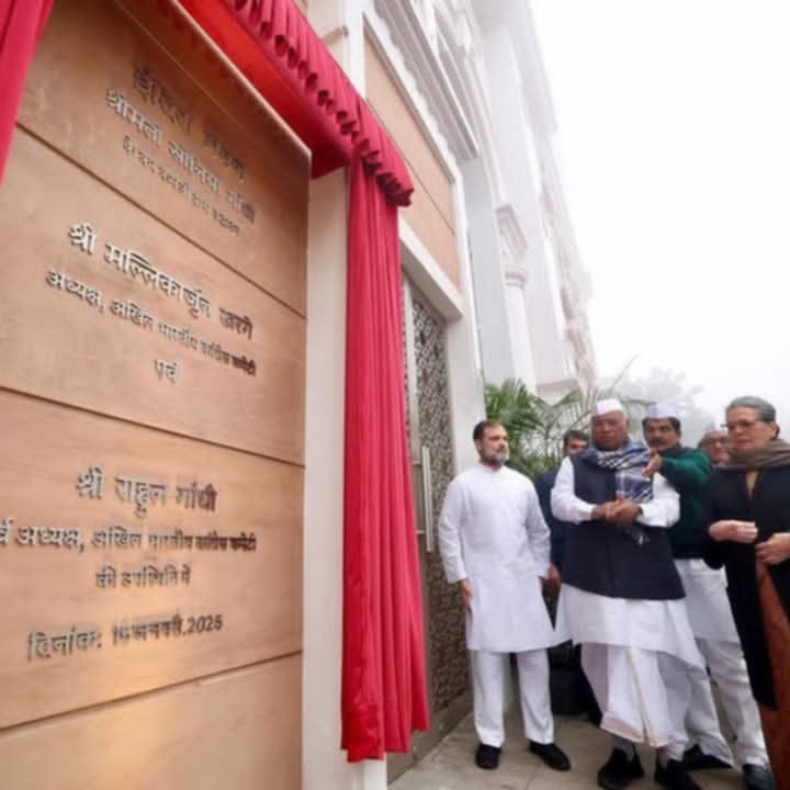 नई दिल्ली। कांग्रेस पार्टी ने आज बुधवार को अपने नए मुख्यालय इंदिरा भवन का भव्य उद्घाटन किया। कोटला रोड स्थित इस आधुनिक भवन का उद्घाटन कांग्रेस की पूर्व अध्यक्ष सोनिया गांधी और वर्तमान पार्टी अध्यक्ष मल्लिकार्जुन खड़गे ने किया। इस खास मौके पर कांग्रेस सांसद और लोकसभा में विपक्ष के नेता राहुल गांधी, कांग्रेस महासचिव व सांसद प्रियंका गांधी समेत अन्य वरिष्ठ नेताओं समेत अनेक गणमान्य नागरिक उपस्थित थे।