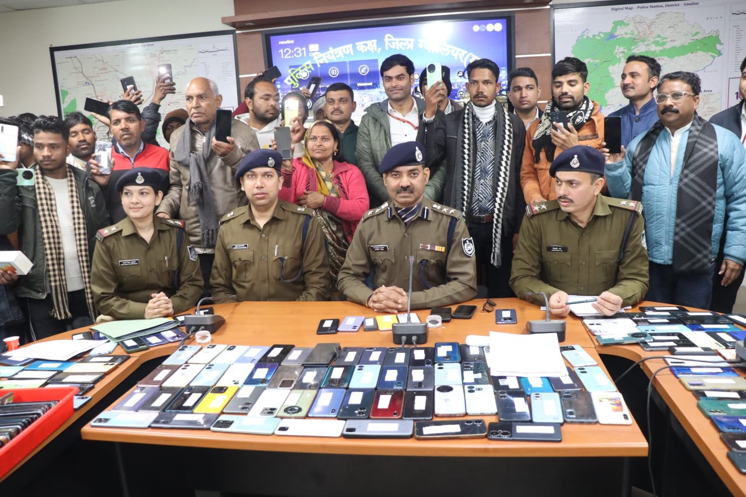 ग्वालियर । पुलिस अधीक्षक ग्वालियर धर्मवीर सिंह (भापुसे)* को प्रतिदिन मोबाइल गुम होने संबंधी आवेदन सीईआईआर पोर्टल के माध्यम से प्राप्त हो रहे हैं। जिस पर से वरिष्ठ अधिकारियों के निर्देशाें के परिपालन में एएसपी अपराध श्री आयुष गुप्ता (भापुसे) एवं डीएसपी अपराध श्री नागेन्द्र सिंह सिकरवार के मार्गदर्शन में प्रभारी सायबर सेल ग्वालियर उनि० श्रीमती रजनी सिंह रघुवंशी द्वारा मोबाइल गुम होने संबंधी प्राप्त आवेदनों पर कार्यवाही करने हेतु सायबर सेल की टीम को लगाया गया। सायबर सेल टीम द्वारा उक्त आवेदनों पर त्वरित कार्यवाही करते हुए सीईआईआर पोर्टल के माध्यम से विभिन्न कम्पनियों के 675 मोबाइलों को ट्रेस कर बरामद किया गया। सायबर सेल की टीम ने माह अक्टूबर से दिसम्बर 2024 तक तीन मा हमें लगभग 01 करोड़ 60 लाख रूपये कीमत के 675 मोबाइल बरामद किये जो कि एप्पल, सेमसंग, वनप्लस, ओप्पो, वीवो, पोको, टेक्नो, रेडमी, रीयलमी, एमआई आदि कंपनियों के है।