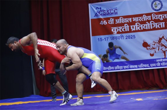 जबलपुर। एमपी पावर मैनेजमेंट कंपनी की केन्द्रीय क्रीड़ा एवं कला परिषद के तत्वावधान में 46 वीं अखिल भारतीय विद्युत क्रीड़ा नियंत्रण मण्डल कुश्ती प्रतियोगिता में मेजबान एमपी पावर के पहलवान संतोष द्विवेदी ने पदक तालिका में अपनी टीम की आशा को जीवित बनाए रखा है। वे 92 किलोग्राम भार वर्ग के फाइनल में पहुंच गए। संतोष द्विवेदी राजस्थान राज्य विद्युत प्रसारण निगम लिमिटेड के पहलवान सुनील कुमार को बॉय फॉल से पराजित किया। एमपी पावर के आठ पहलवान तृतीय व चतुर्थ स्थान के लिए अपने प्रतिद्वंदी पहलवानों से मुकाबला करेंगे। वहीं हरियाणा पावर स्पोर्ट्स ग्रुप व हिमाचल प्रदेश राज्य विद्युत मण्डल के के पांच-पांच, पंजाब स्टेट पावर कार्पोरेशन लिमिटेड (पीएसपीसीएल) के तीन, महावितरण महाराष्ट्र के दो और टाटा पावर दिल्ली व मेजबान एमपी पावर के एक-एक पहलवान फाइनल मुकाबले में पहुंच गए। प्रतियोगिता का समापन व पुरस्कार वितरण समारोह 17 जनवरी को दोपहर 2.00 बजे तरंग प्रेक्षागृह में आयोजित किया गया है।