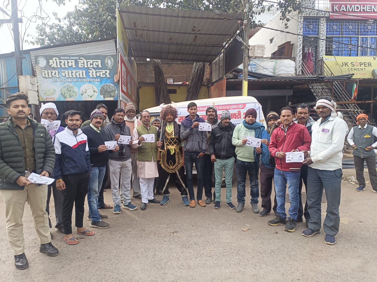 जागरूकता अभियान में जबेरा थाना से आरक्षक 455 अनमोल दीक्षित, हंड्रेड डायल प्रधान आरक्षक 222 विजय