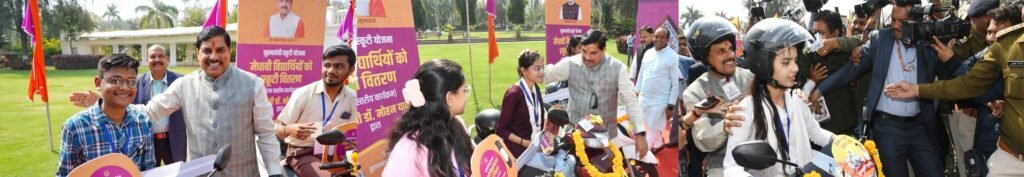 मुख्यमंत्री डॉ. यादव ने समारोह में 10 मेधावी विद्यार्थियों को स्कूटी की चाबी प्रदान की तथा उनके साथ स्कूटी चलाकर उनका उत्साहवर्धन भी किया। माध्यमिक शिक्षा मंडल की कक्षा 12वीं की परीक्षा में शासकीय विद्यालयों के टॉपर्स को स्कूटी प्रदान करने की इस योजना के अंतर्गत संपूर्ण प्रदेश में 7 हजार 900 प्रतिभाशाली विद्यार्थियों को ई-स्कूटी प्रदान की जा रही है।